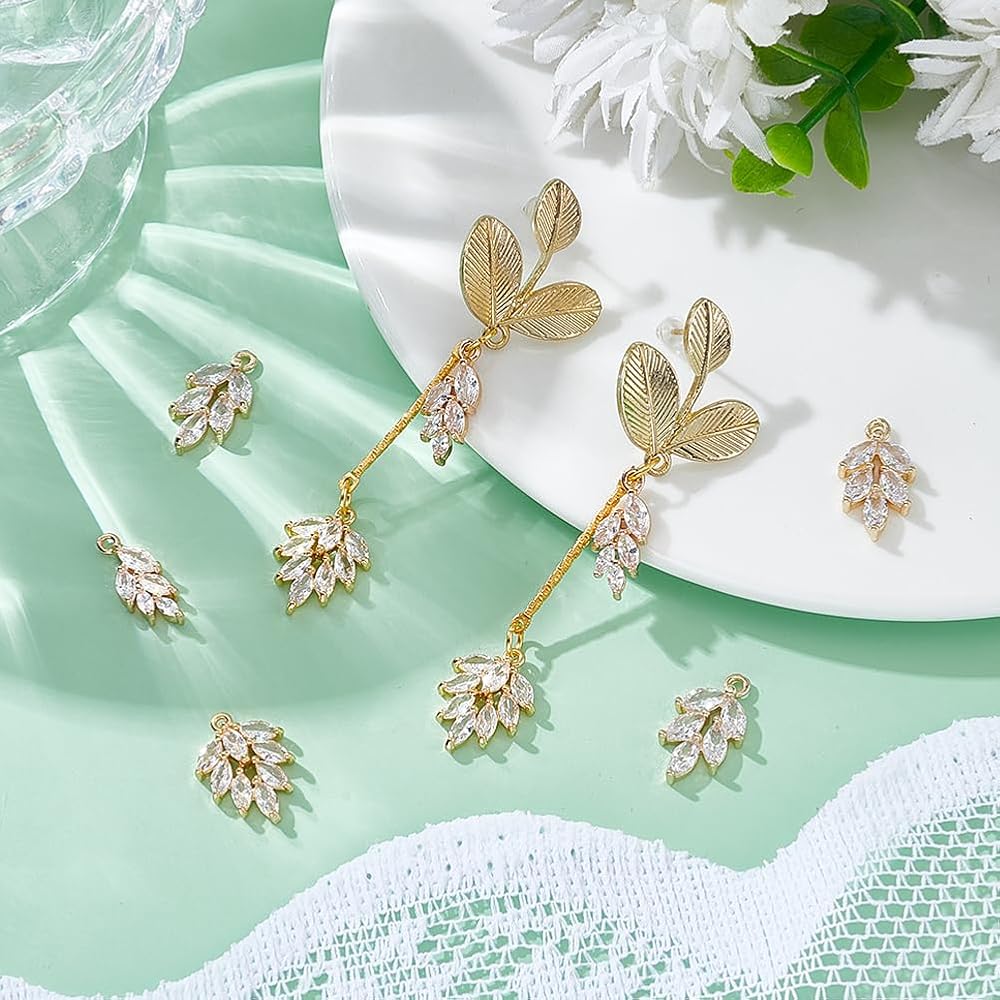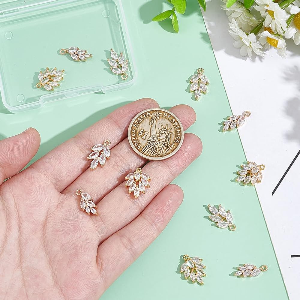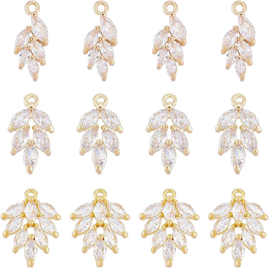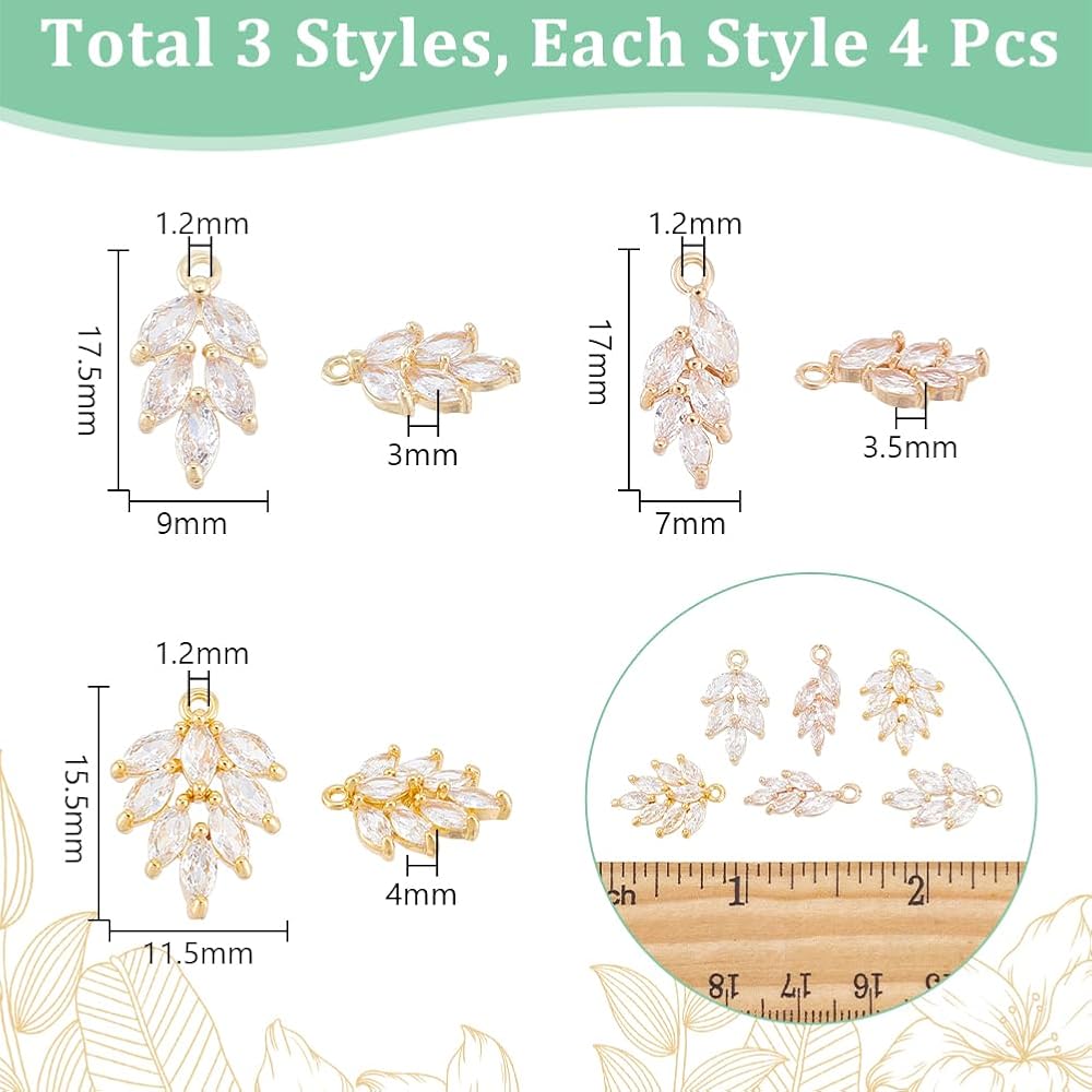 UNICRAFTALE حوالي 12 قطعة 3 أنماط من أوراق حجر الراين سحر القمح سحر القمح كريستال المعلقات مكعب زركونيا شجرة يترك سحر ضوء الذهب المعلقات سحر القرط ل DIY سوار قلادة صنع المجوهرات