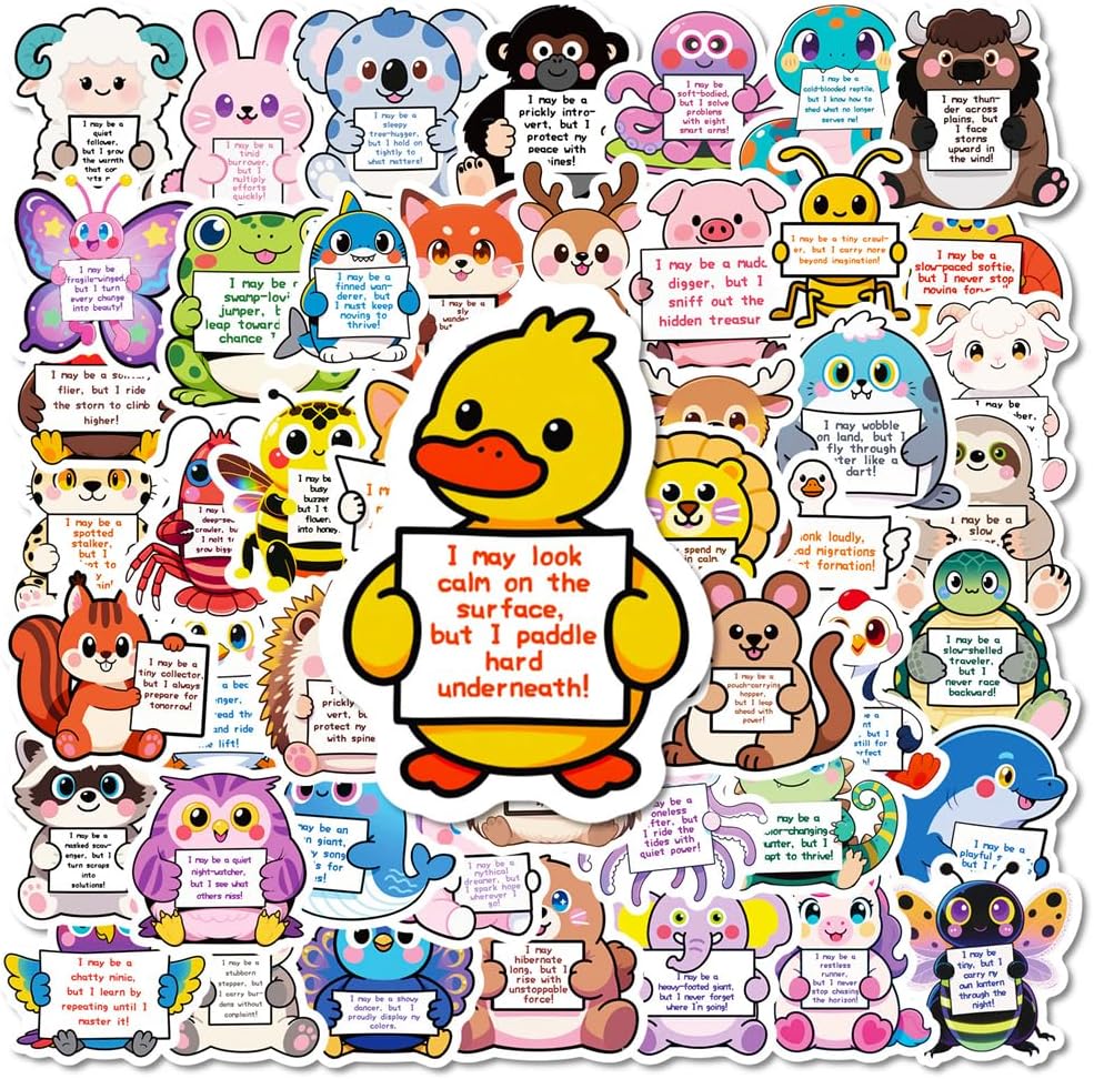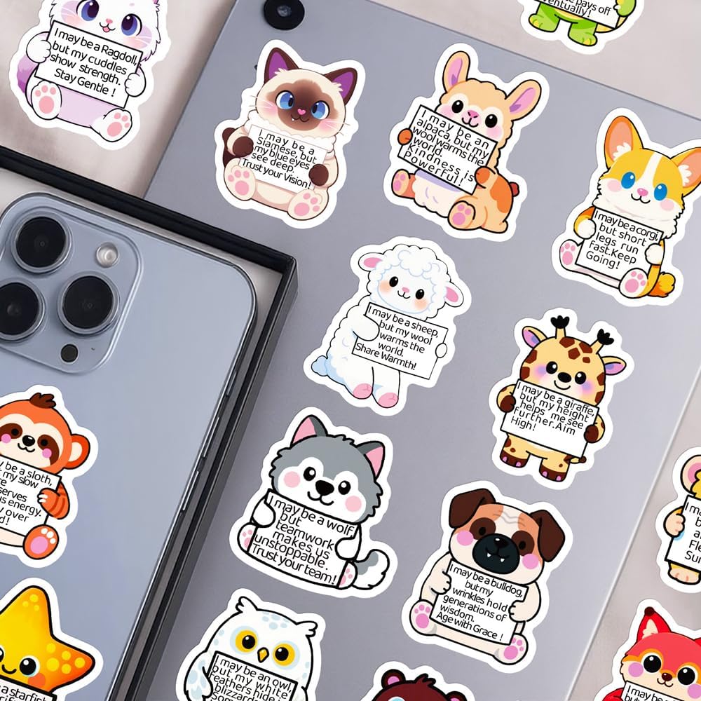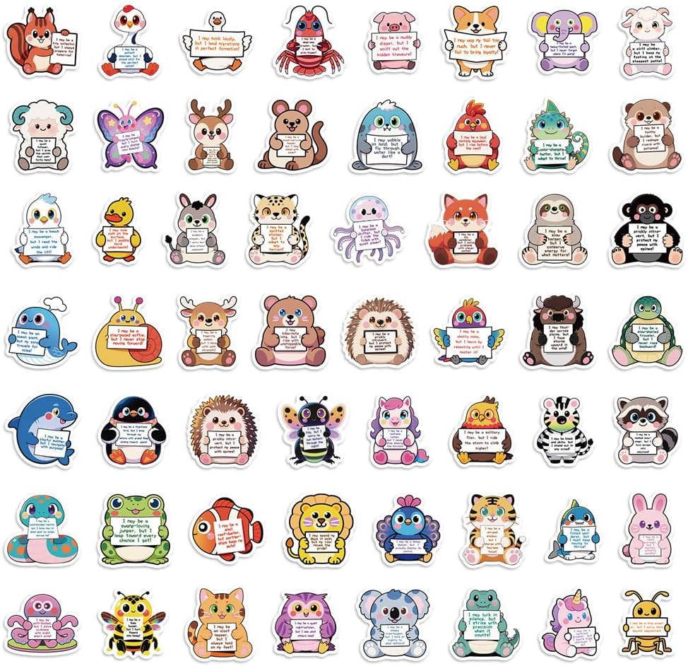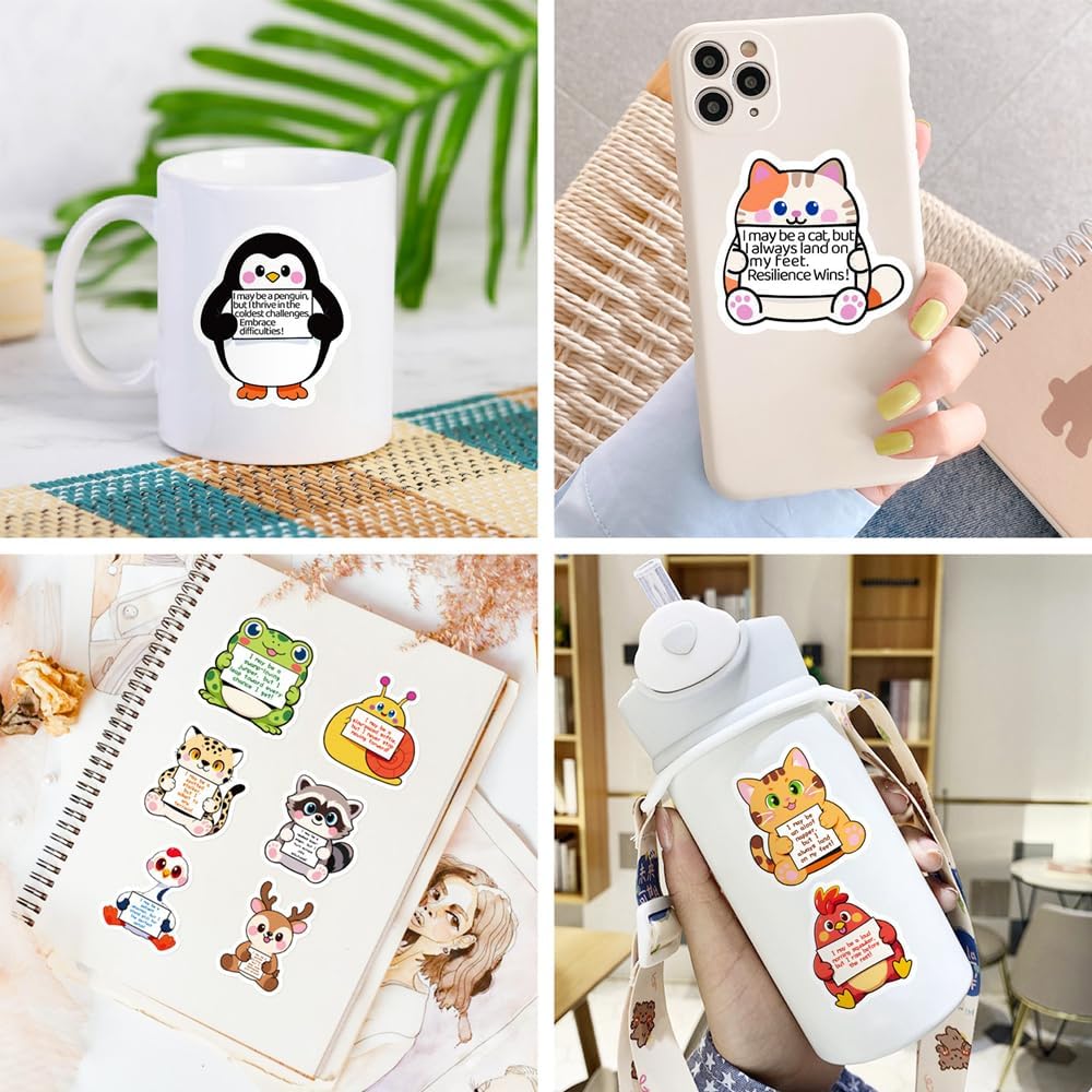 112 قطعة من ملصقات التأكيد - ملصقات حيوانات داعمة عاطفيًا، ملصقات حيوانات لطيفة، ملصق إيجابي تحفيزي للبالغين أو الأطفال، ملصقات مقاومة للماء لزجاجات المياه وأجهزة الكمبيوتر المحمولة والهواتف