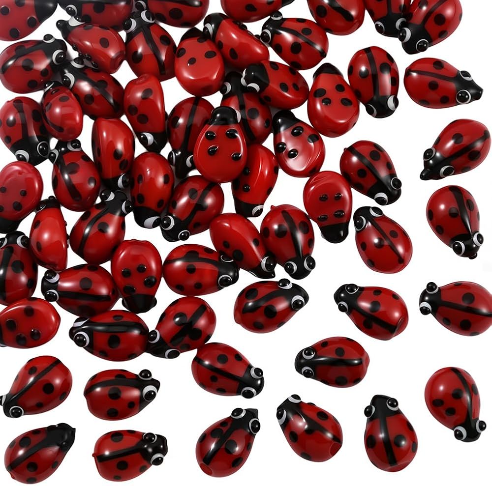 1 صندوق 60 قطعة من الخرز الزجاجي الأحمر الأسود الخنفساء المصنوع يدويًا مع ثقوب حشرات الخنفساء اللطيفة على شكل حيوان حديقة ساحرة خرزة فاصل لصنع المجوهرات والأساور والديكورات اليدوية