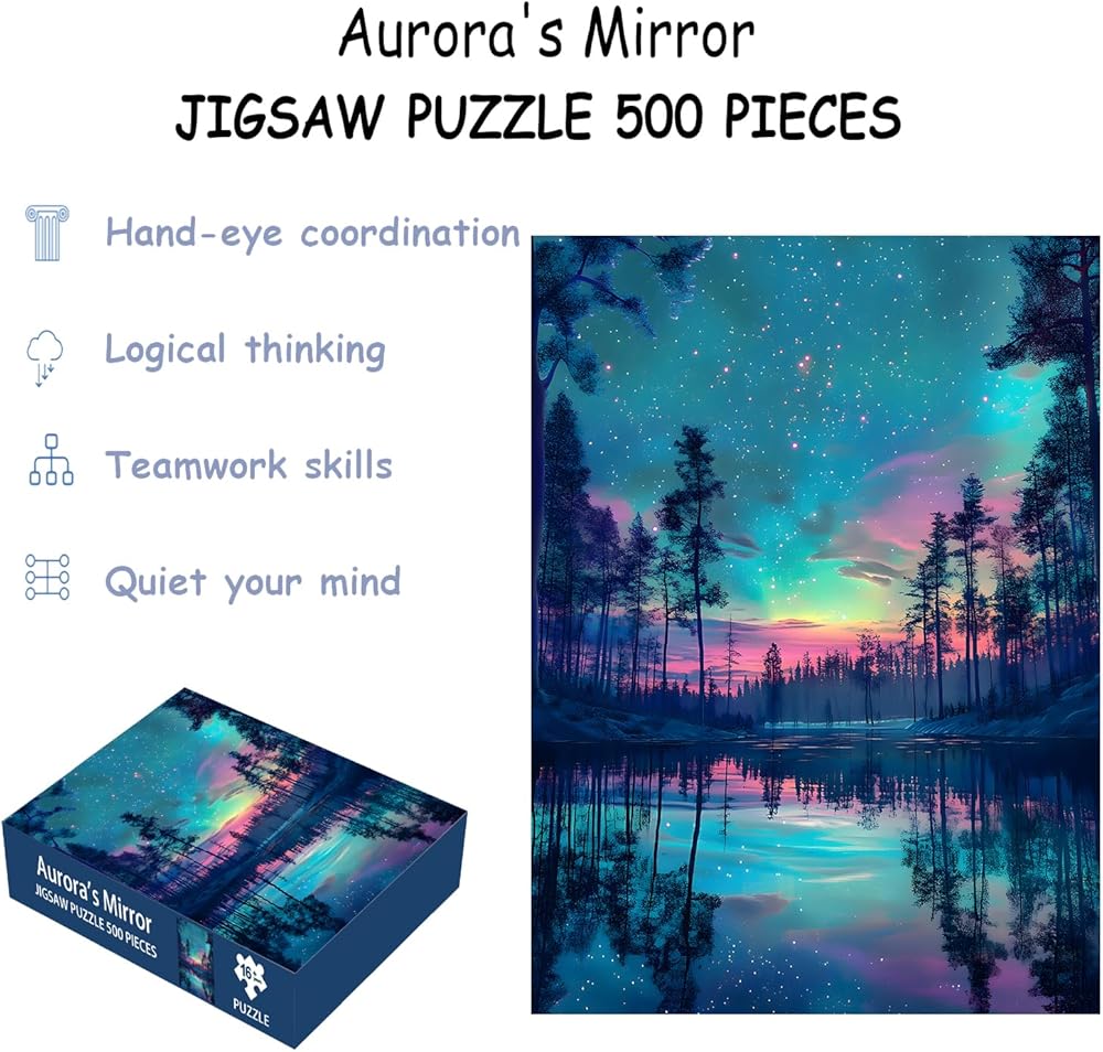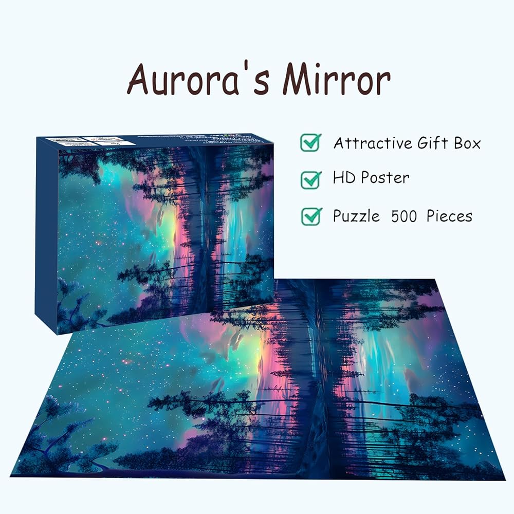 Puzzles For Adults 500 Pieces, Northern Lights Jigsaw Puzzles - Aurora's Mirror, Impossible Landscape Puzzle for Seniors Families,20.47x14.96 inches, 1:1 poster, Letter on the Back