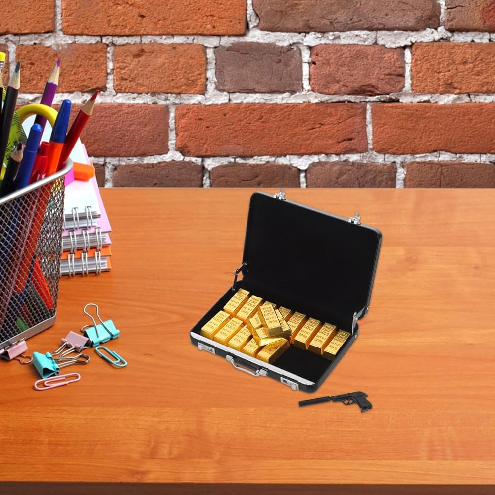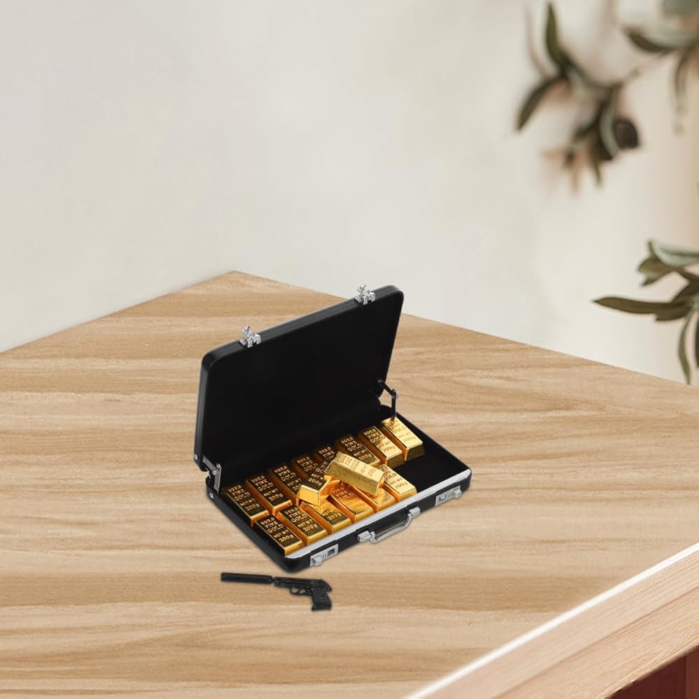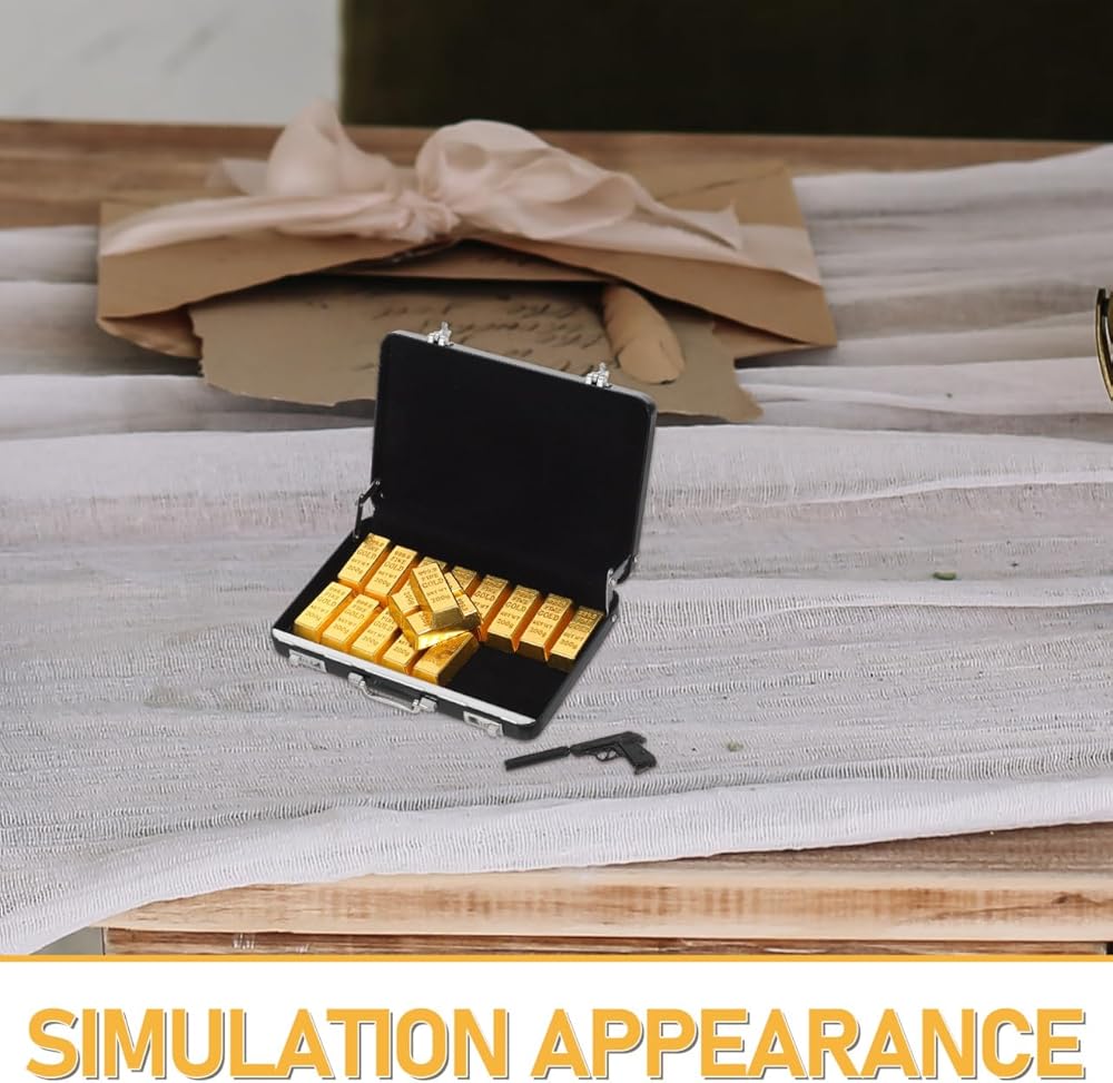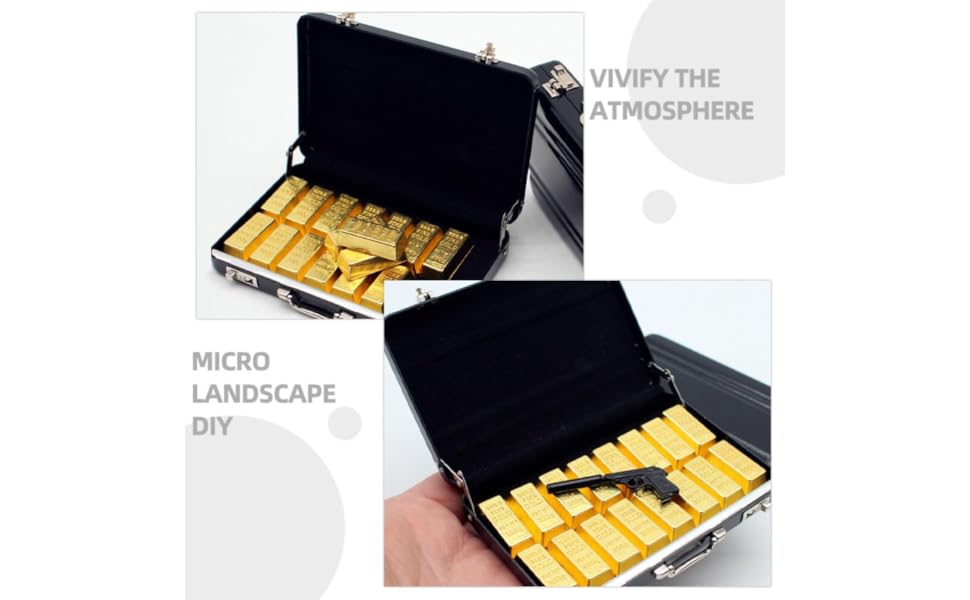 تصميم واقعي لحقيبة صغيرة: يتميز نموذج الحقيبة المصغرة هذا ببنية من سبائك الألومنيوم النابضة بالحياة مع قضبان ذهبية مزيفة مفصلة، مثالية لتعزيز إكسسوارات بيت الدمى وإنشاء مشاهد طبيعية صغيرة أصلية