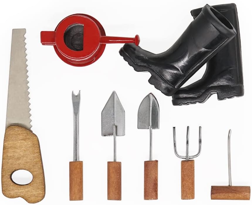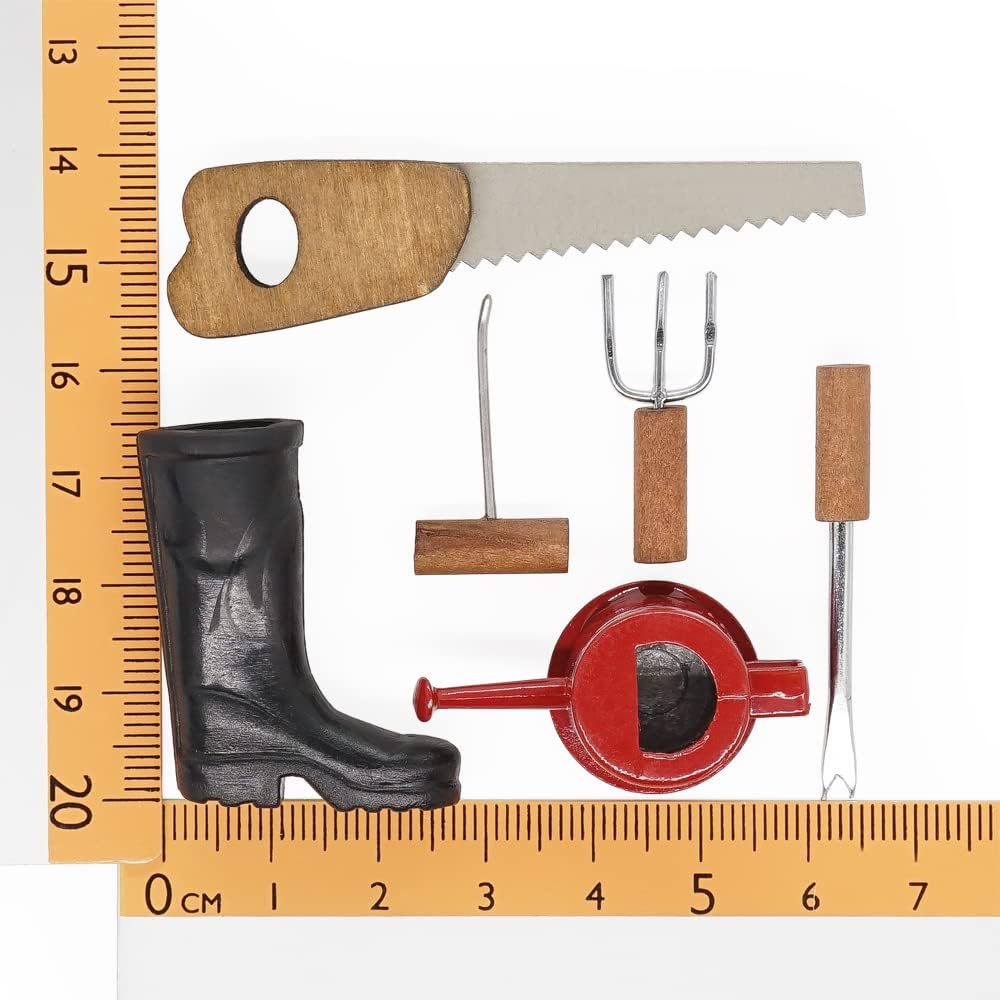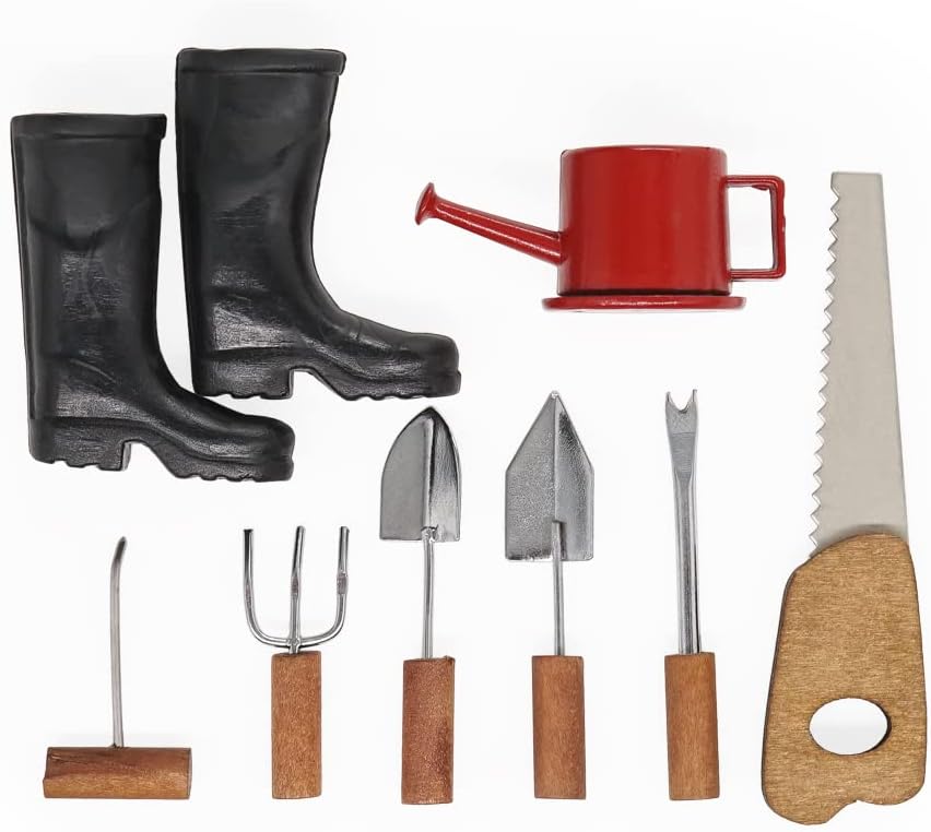 Package Included: 1x miniature boots, 6x farm tool, 1x watering can (Not Including Other Items)
