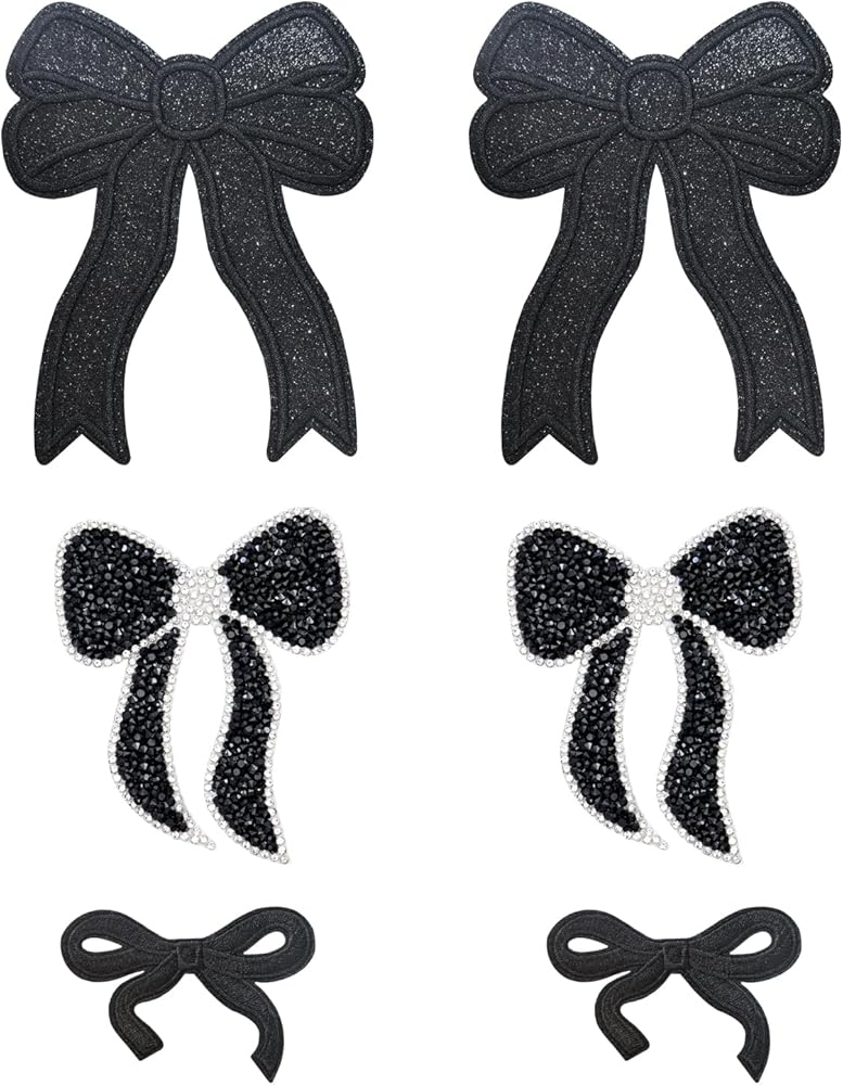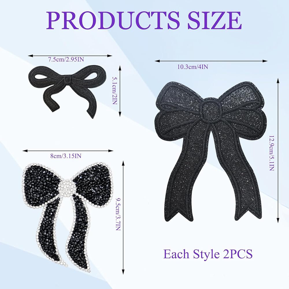 • Package Include: This sets include total 6pcs black bow patches. have 3 styles, each style 2pcs.The small bow patches size is about 3"x2.4", middle bow rhinestone applique patches size is 3.15"x4", the large embroidered patch size is about 4.2"x5.2". This sufficient quantity and different size is enough to meet your daily decorative needs.