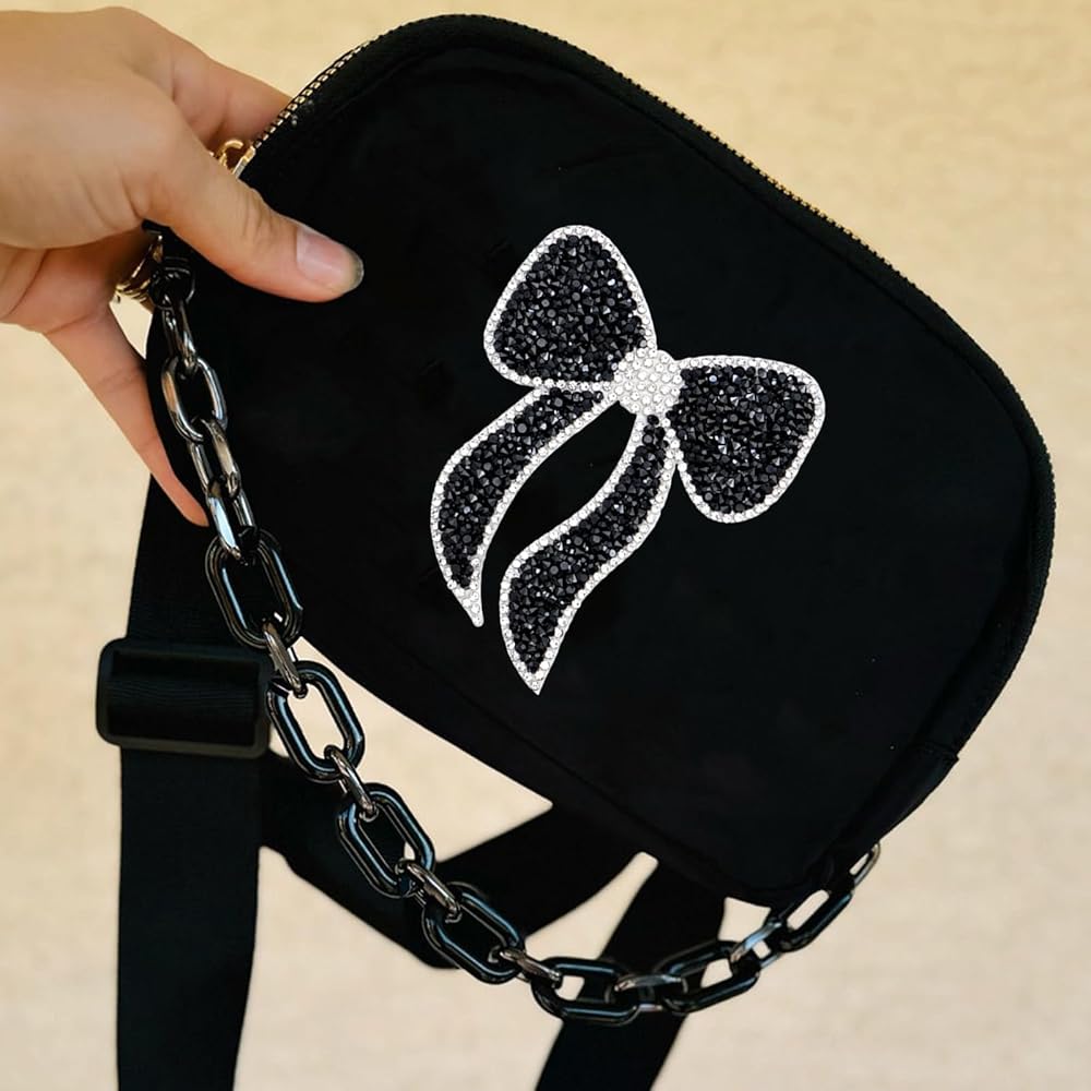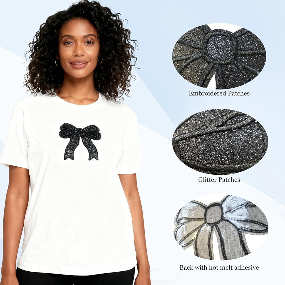 Bow Iron on Patches, Glitter Bowknot Embroidered Applique, Cute Large Bow Patch DIY Decoration for Sewing Jacket Jeans Hat Shirt Clothing- Black