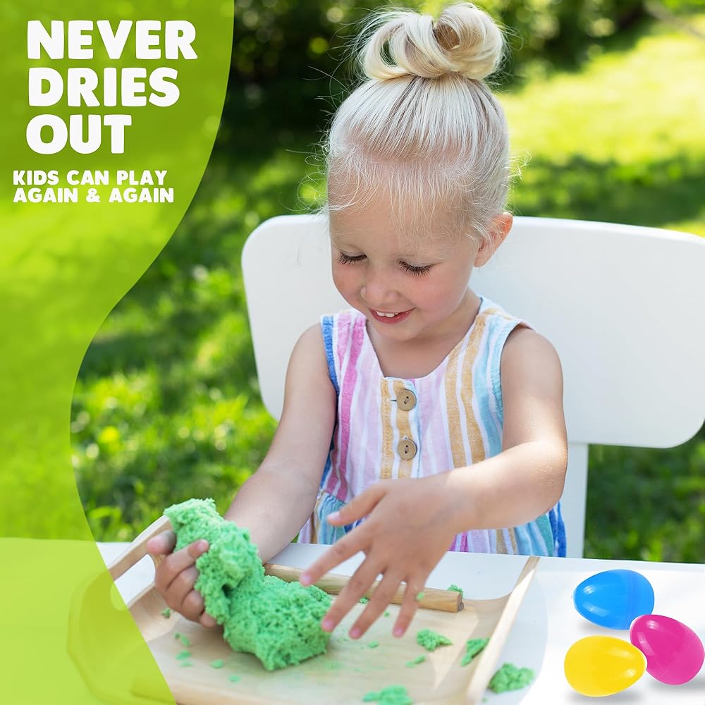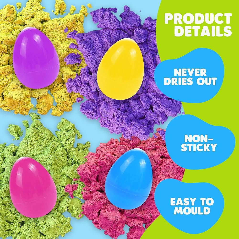 ساعات من المرح: بفضل بيض عيد الفصح البلاستيكي مع الرمال السحرية، ستستمر المتعة لفترة طويلة بعد انتهاء الصيد. للاحتفال بهذا الموسم، قمنا بتصميم رمل اللعب بألوان عيد الفصح - الأصفر والوردي والأرجواني والأخضر.