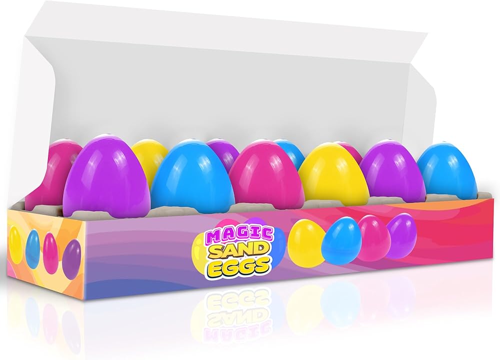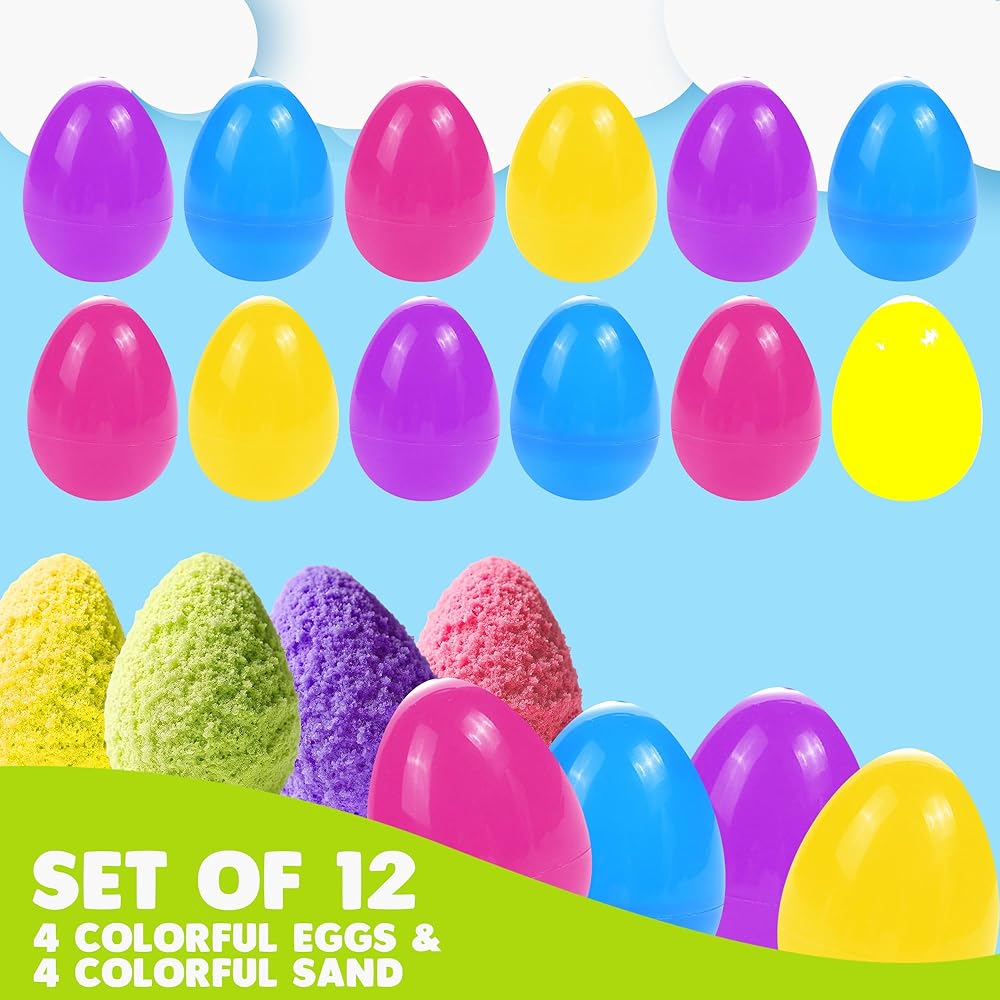 بيض عيد الفصح الرملي السحري من ArtCreativity - مجموعة من 12 بيضة عيد الفصح المملوءة مسبقًا - بيض مفاجأة ملون للأطفال بألوان نابضة بالحياة متنوعة - لوازم صيد بيض عيد الفصح - حشوات سلة عيد الفصح