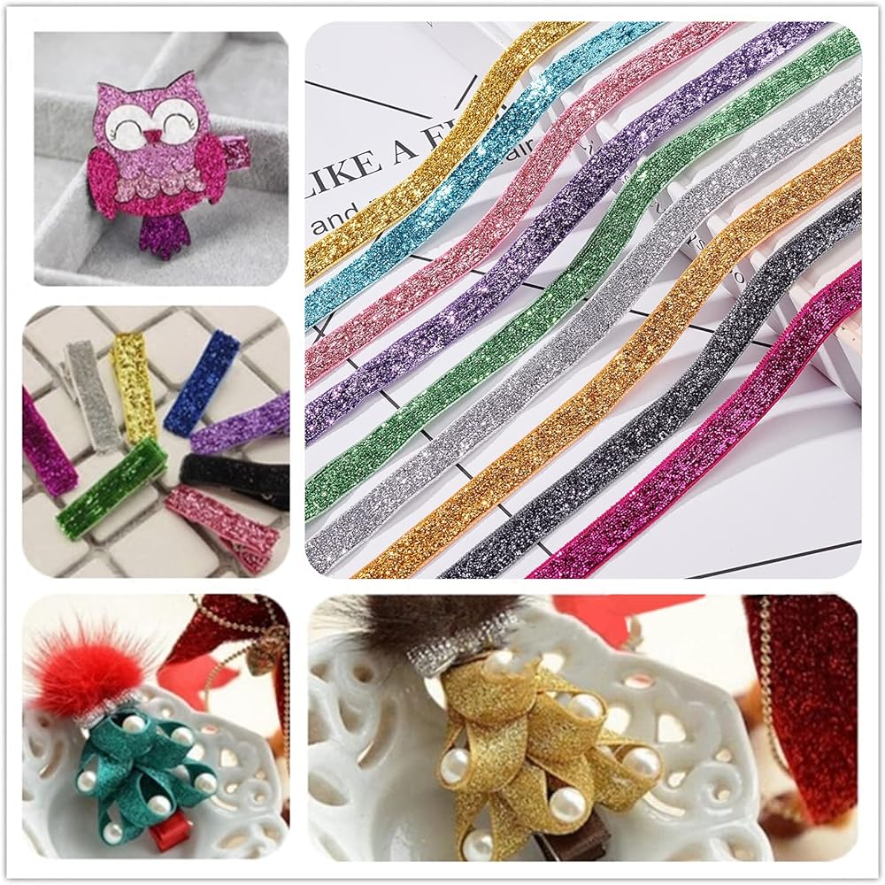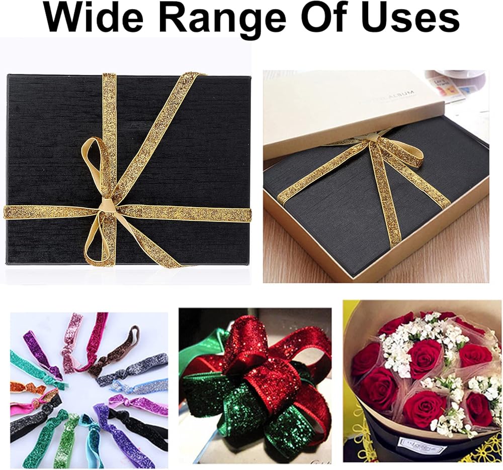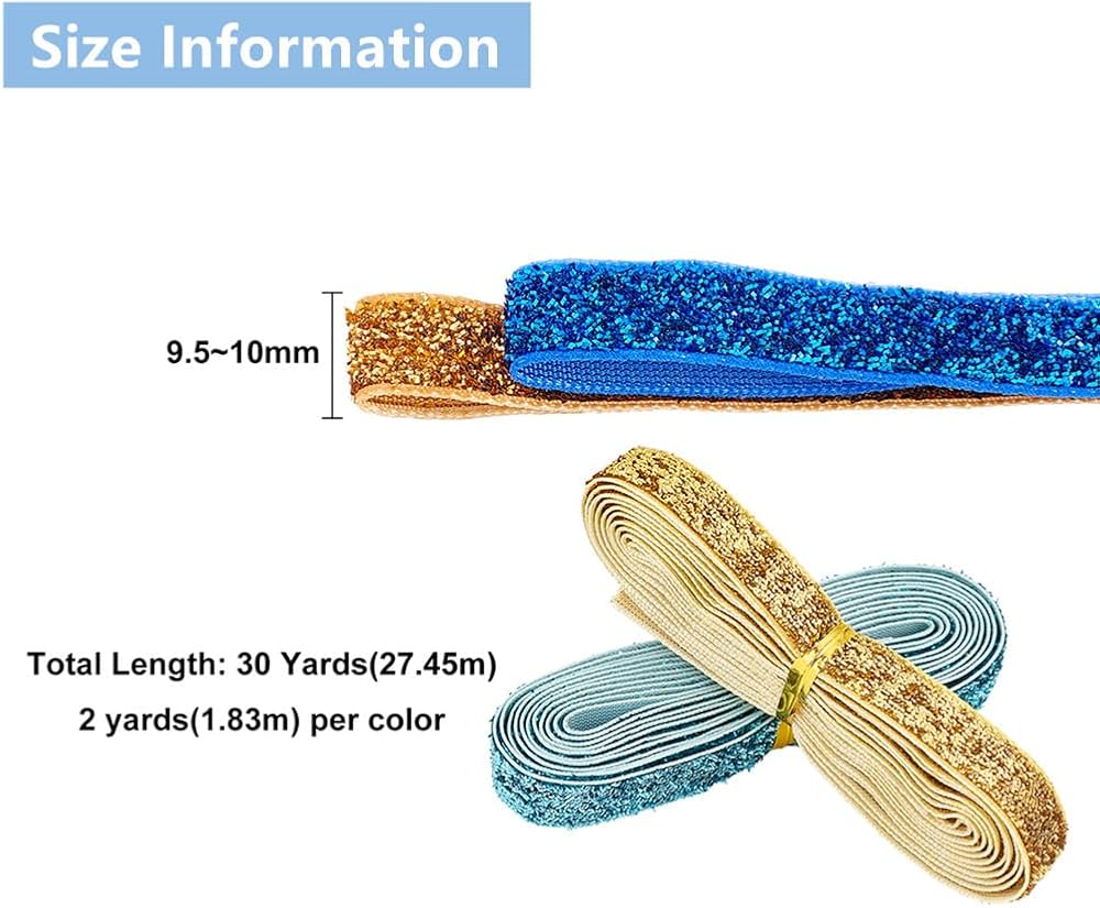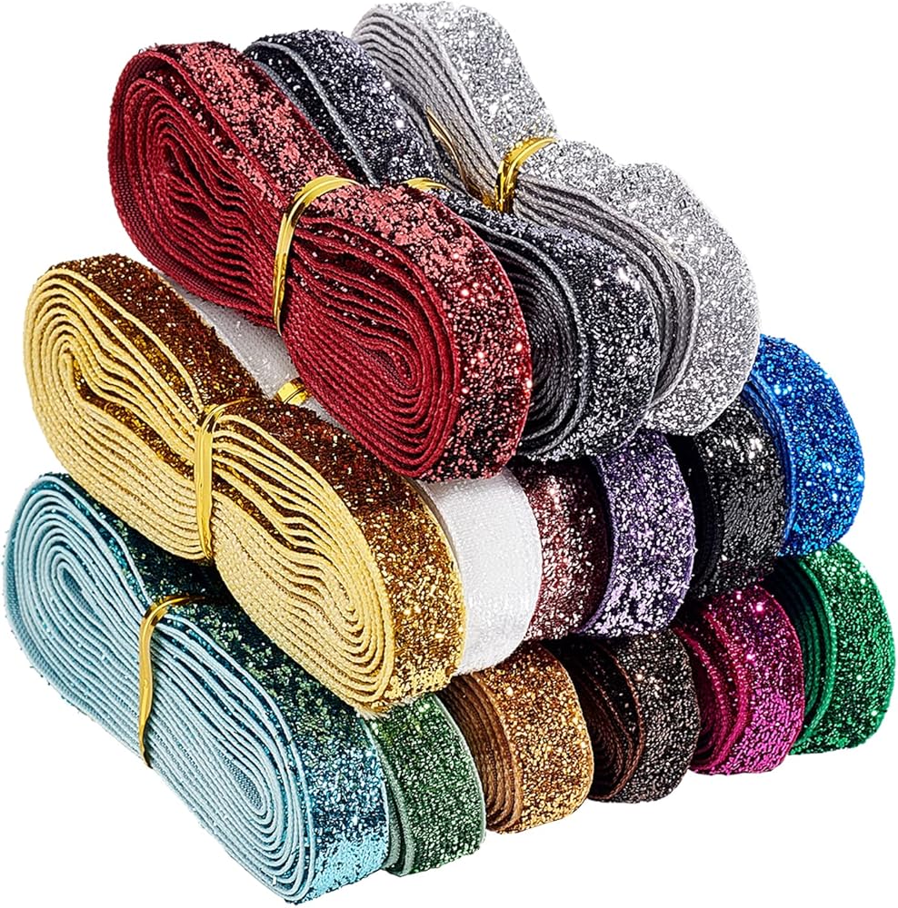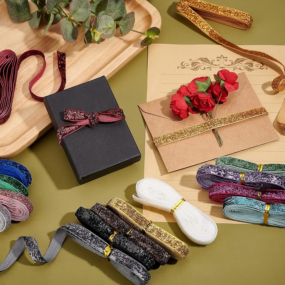 Package List: You will receive 15 rolls of high-quality glitter ribbon, each roll measures 2 yards (1.83m) long and 9.5~10mm wide, totaling 30 yards (27.45m).