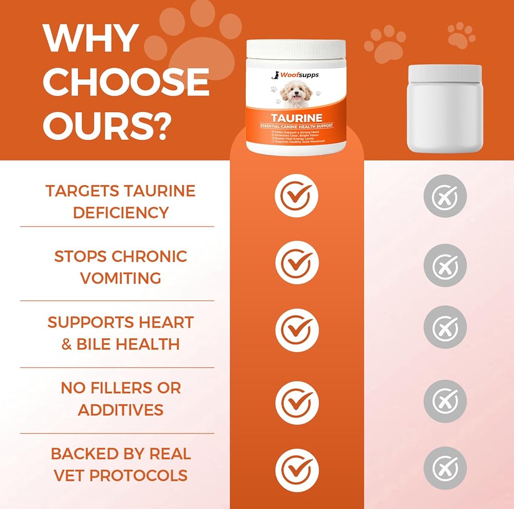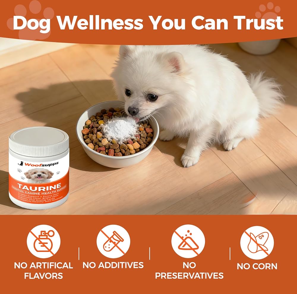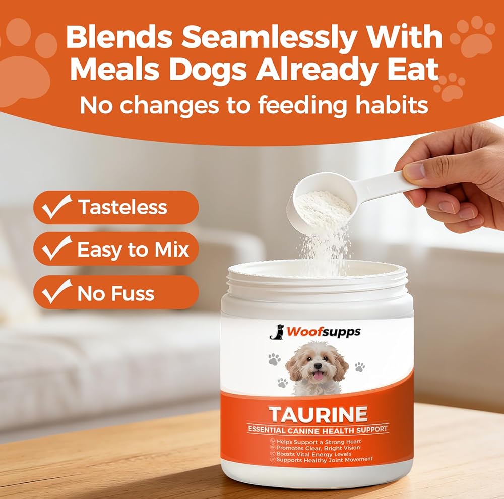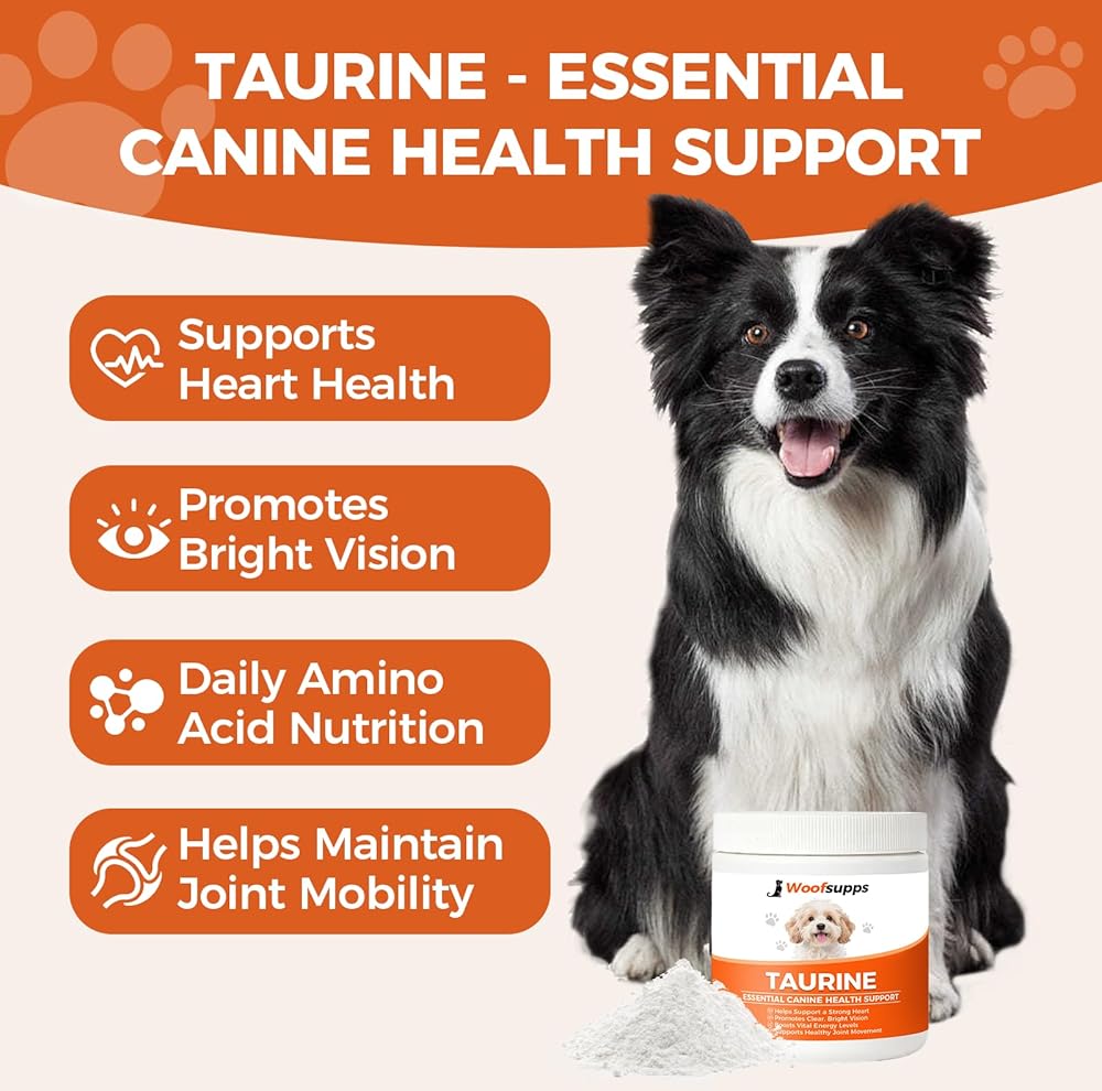 مسحوق ووف سابس توراين للكلاب: تم تركيبه خصيصًا للدعم الغذائي للكلاب، ويساهم توراين في استقلاب الطاقة، مما يساعد كلبك على البقاء نشيطًا ومنتبهًا ومنخرطًا.
