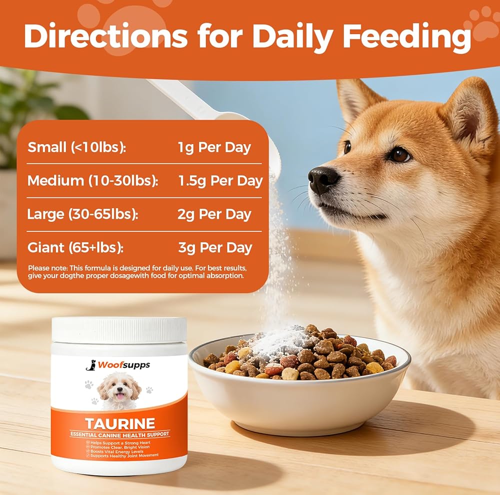 【يدعم القلب والعينين والعضلات】يلعب التورين دورًا مهمًا في دعم صحة القلب ووظيفة العين والحيوية اليومية الشاملة للكلاب. مثالي للحفاظ على مستويات الصحة والطاقة اليومية لدى الجراء والبالغين والكلاب الكبيرة