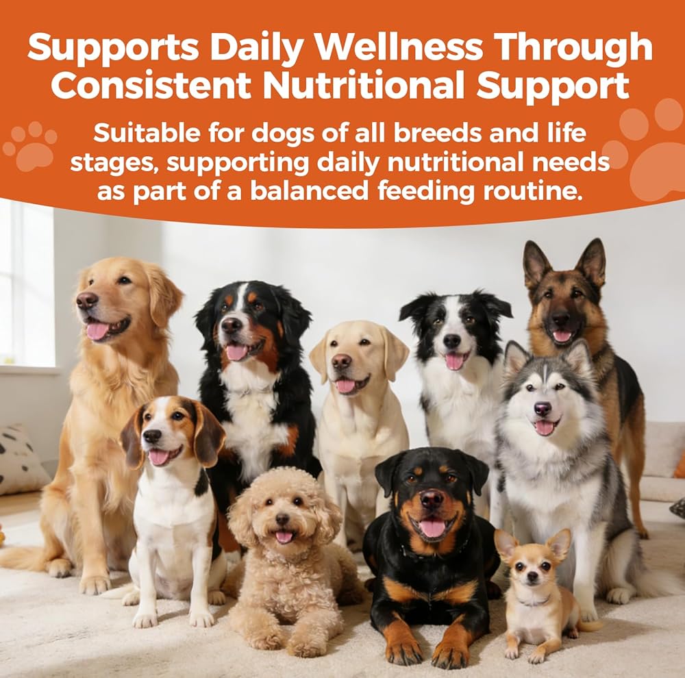 【سهل الخلط مع طعام الكلاب】يمتزج المسحوق الناعم عالي الذوبان بسلاسة مع الطعام الرطب أو الجاف دون تغيير الطعم أو الملمس - مما يجعل المكملات اليومية خالية من الإجهاد، حتى بالنسبة للأكل الذين يصعب إرضاؤهم.