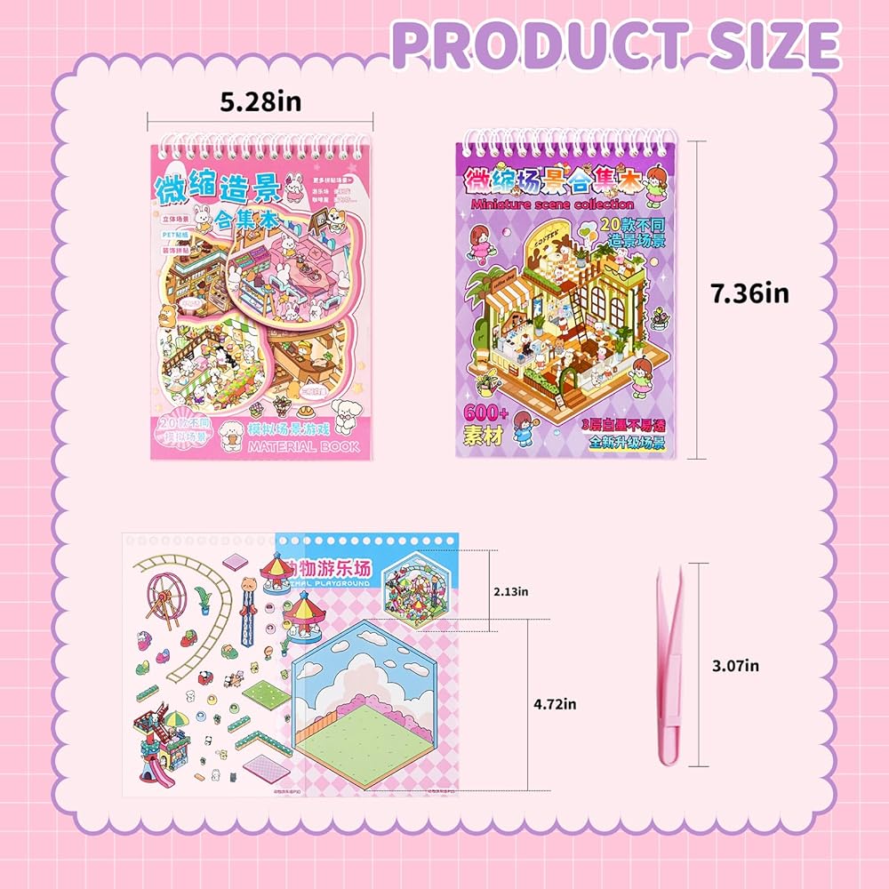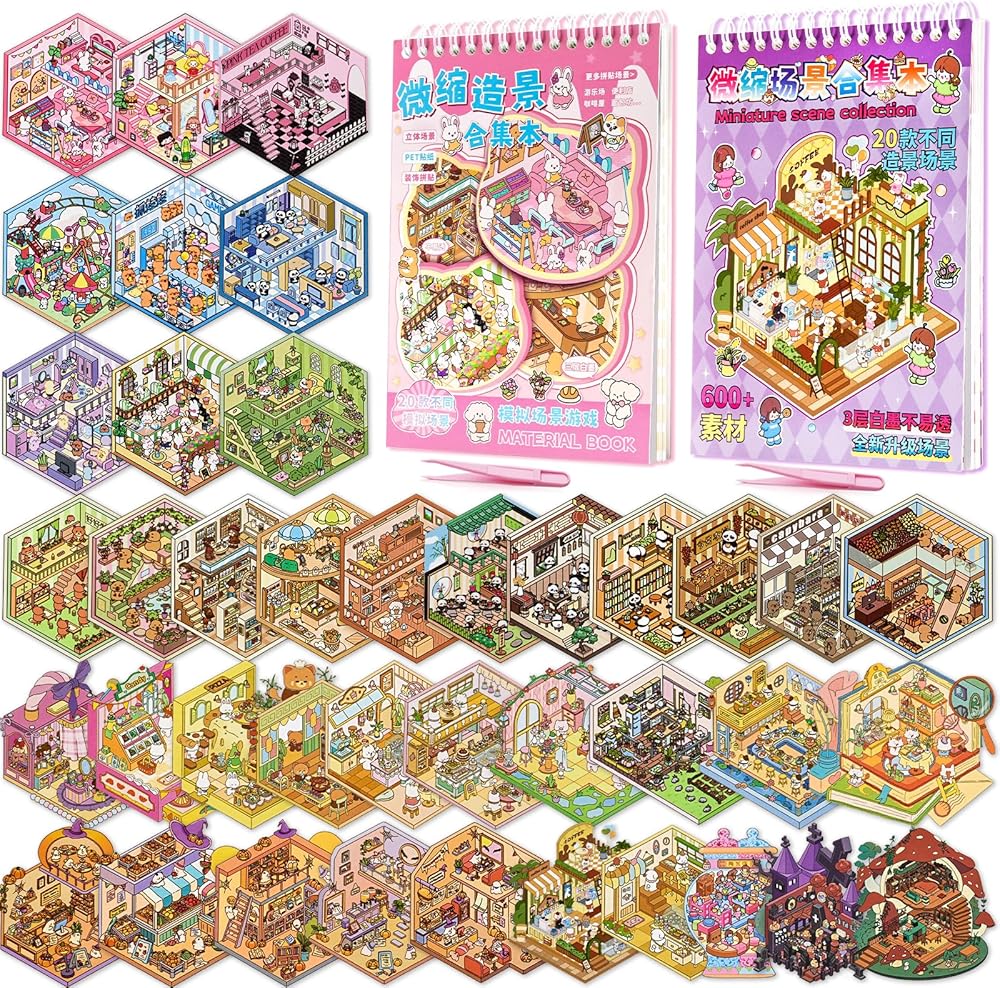 كتابان من ملصقات المشهد ثلاثي الأبعاد يمكنك صنعها بنفسك مع 40 مجموعة من ملصقات المنزل ثلاثية الأبعاد اصنع بنفسك ملصق علاج مشهد الرسوم المتحركة المصغر الخاص بك لتخفيف التوتر وتمضية الوقت