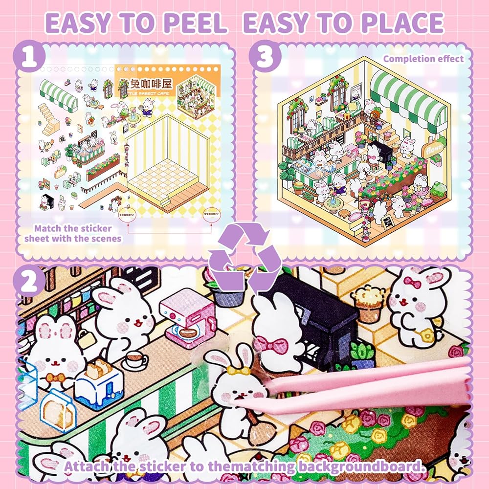 40 تصميمًا لمشهد الملصق: سوف تحصل على كتابين من كتاب مشهد الملصقات ثلاثي الأبعاد DIY، مجمعين في كتابين ملفوفين، تأتي المجموعة أيضًا مع قطعتين من الملقط لتسهيل التعامل مع الملصقات وتطبيقها، تحتوي ملصقات المنزل ثلاثية الأبعاد على 40 مجموعة من المواضيع، بما في ذلك المقاهي ومحلات الزهور والقلاع والمتنزهات الترفيهية، إلخ. تفتح إمكانيات لا حصر لها لك