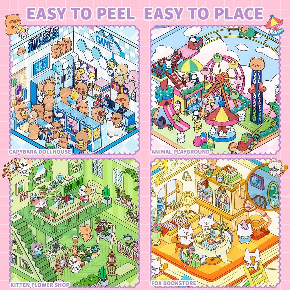 ملصقات مشهد الرسوم المتحركة: أطلق العنان لإبداعك مع العلاج بالملصقات! يُعد كتاب ملصقات المشهد المصغر ثلاثي الأبعاد هذا بمثابة هدية مدروسة لأعياد الميلاد أو العطلات أو المناسبات الإبداعية. مثالية لعشاق المجلات ومحبي الحرف اليدوية والطلاب