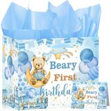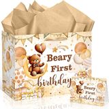 • Packaging Includes: You will receive 1pcs beary first birthday gift bag, 3pcs light gold birthday wrapping papers, and 1pcs greeting card. Bear birthday gift bag with a cute bear, balloon elements further create the atmosphere of a one-year birthday party. You can write your expectations on the greeting card.