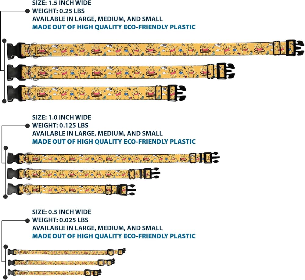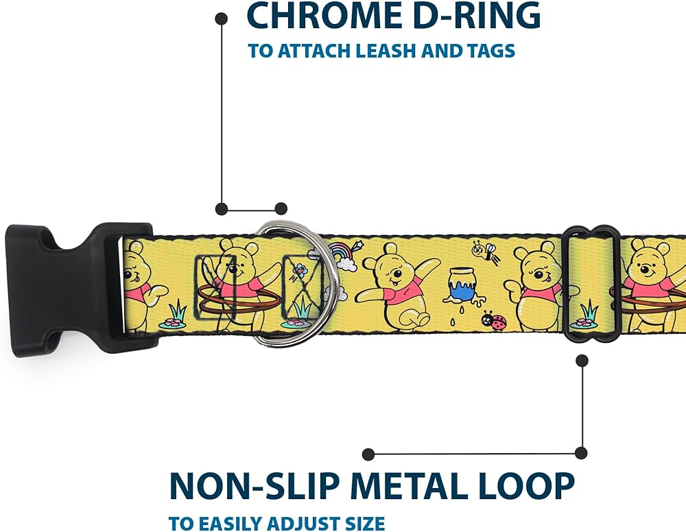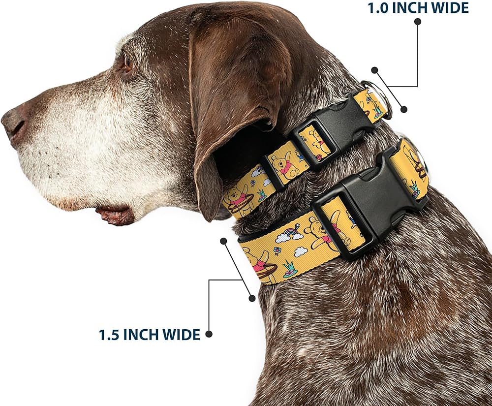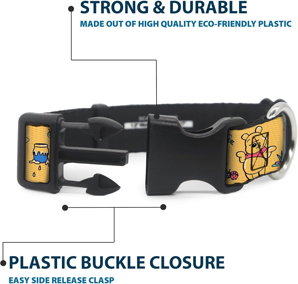 Vibrant and bold, this beautiful, polyester dog collar is made to show off your dog's unique style through all the seasons. With an over engineered plastic buckle and strong D-ring, this durable collar can hold up to whatever your dog can dish out. This product is officially licensed by Disney.