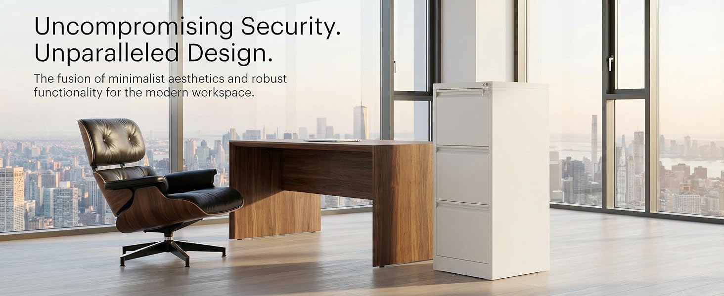 [سعة كبيرة، تصميم موفر للمساحة] حقق أقصى استفادة من المساحة الرأسية. ثلاثة أدراج عميقة مع قضبان تعليق قابلة للتعديل تحتوي على مجلدات letter وlegal وA4 وF4، بالإضافة إلى مساحة إضافية للوازم المكتبية. يتناسب المظهر الجانبي النحيف بشكل أنيق بجانب المكتب، أو تحت النافذة، أو في مكتب منزلي صغير دون ازدحام غرفتك.