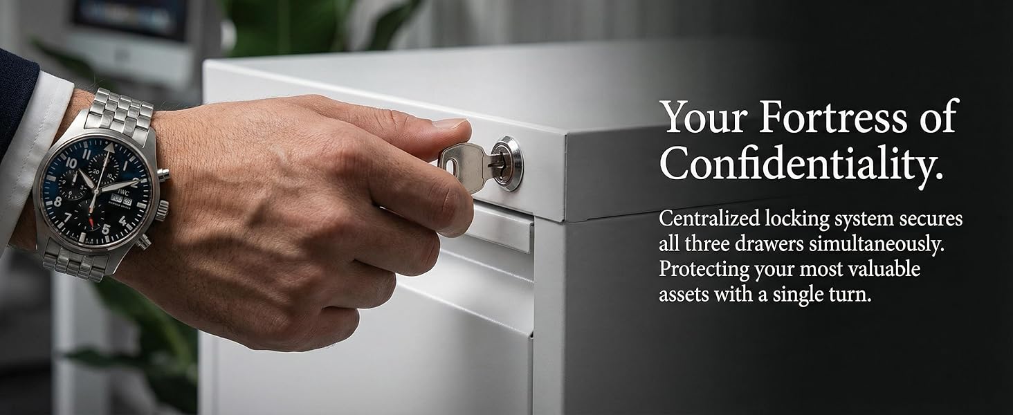 [تخزين آمن بثلاثة أدراج] احتفظ بأوراقك المهمة في مكان واحد محمي. تتميز خزانة الملفات المعدنية المكونة من 3 أدراج بقفل مركزي مع مفتاحين لتأمين جميع الأدراج في وقت واحد، مما يساعد في الحفاظ على العقود وسجلات الضرائب والملفات الشخصية آمنة في مكتبك المنزلي أو مكان العمل.