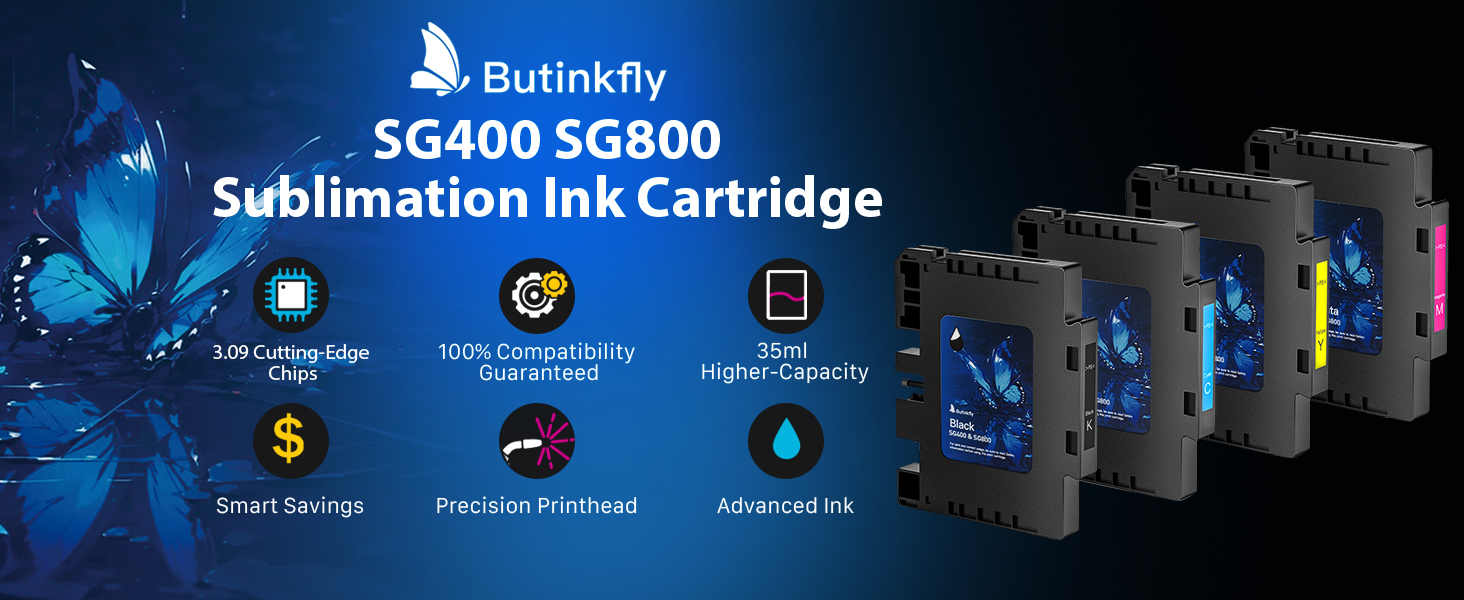 توفير بدون تضحية: يتطابق حبر التسامي Butinkfly SG400 SG800 مع الأداء المثبت في المعمل مع عرض مستوى الحبر في الوقت الفعلي بقيمة ذكية.