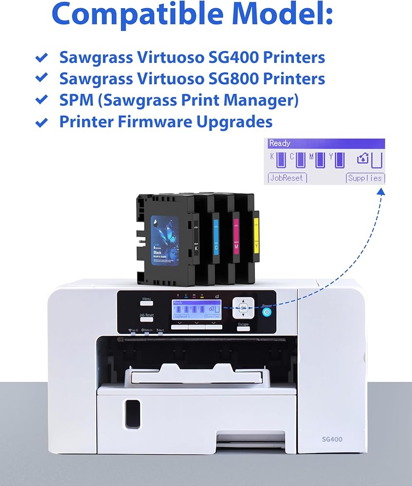 متوافق مع: طابعات التسامي Sawgrass SG400 وSG800، وSPM (Sawgrass Print Manager) وترقية البرامج الثابتة للطابعة. متوافق مع الإصدارات السابقة مع إصدارات البرامج الثابتة 3.09.