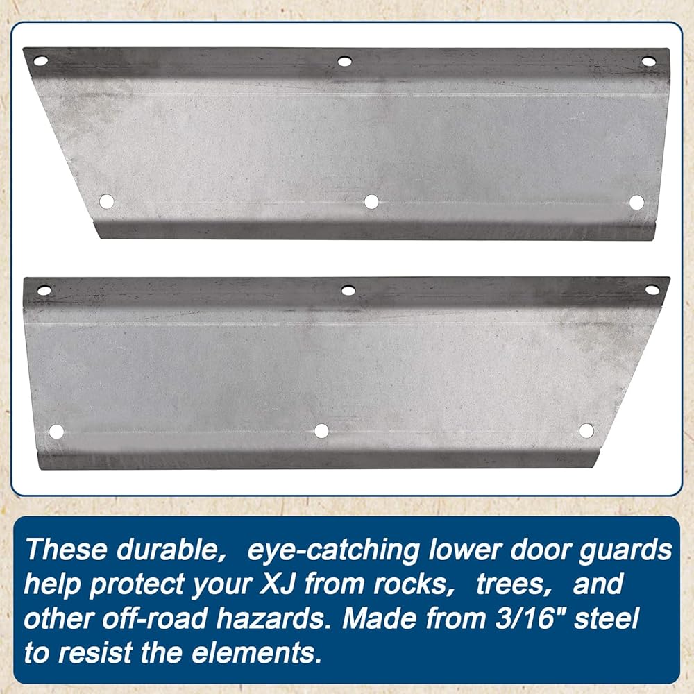 • الملاءمة: هذا الباب السفلي والدرع الجانبي متوافق خصيصًا مع موديلات 1984-2001 Jeep Cherokee XJ ذات 4 أبواب. تأكد من سنة سيارتك وطرازها (Cherokee XJ) وعدد الأبواب (4 أبواب) قبل الشراء لضمان الملاءمة.