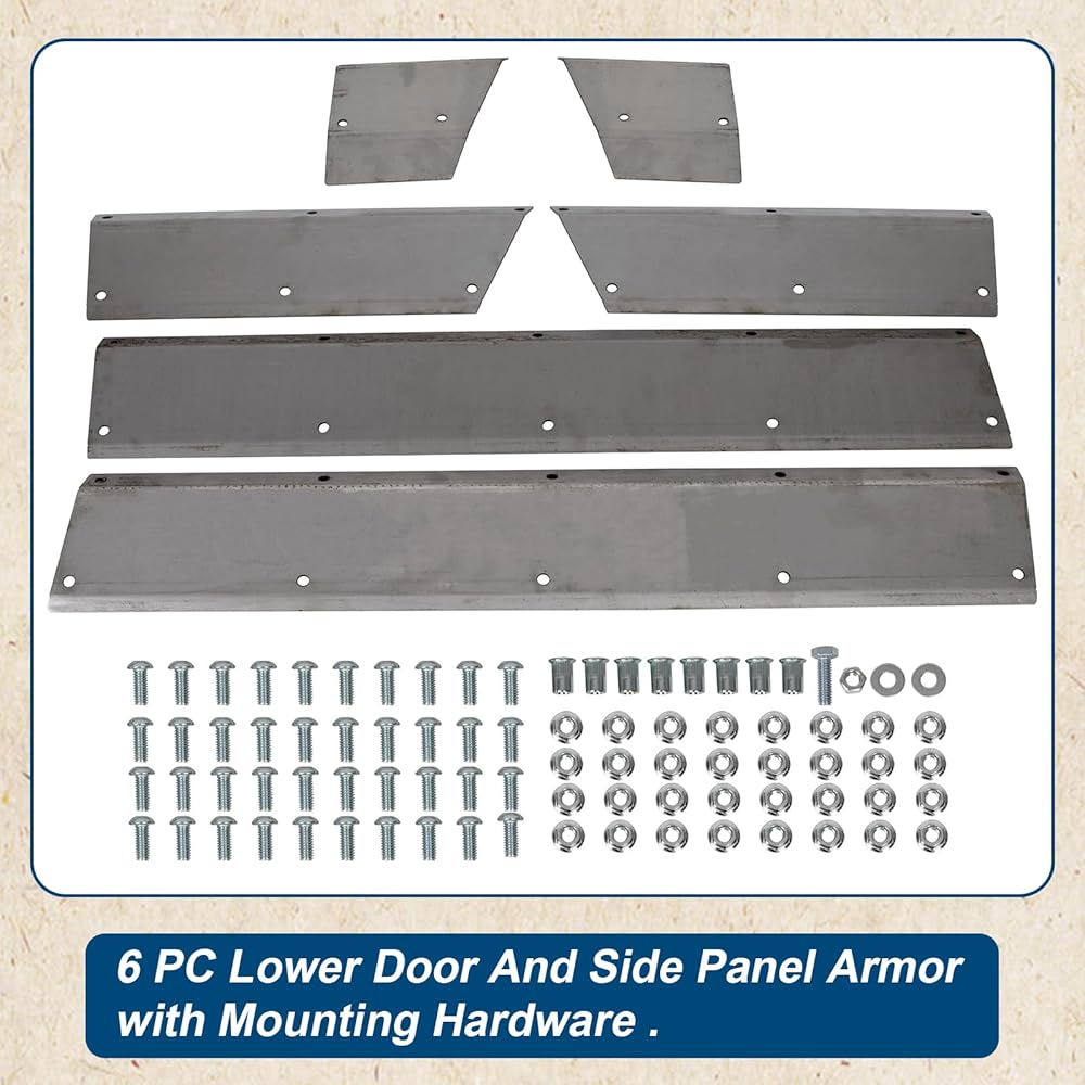 • تشمل العبوة: تحتوي العبوة على 6 قطع من درع الباب السفلي واللوحة الجانبية، بالإضافة إلى أدوات التثبيت المطابقة. ليست هناك حاجة إلى أجزاء إضافية للتثبيت القياسي.
