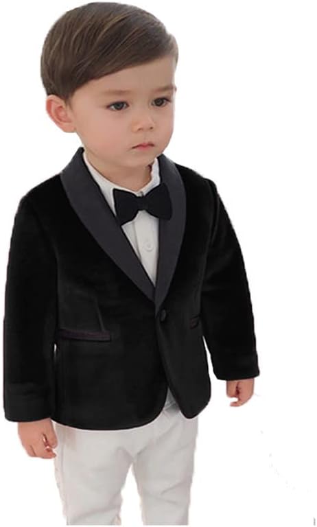 ❤️ The boys velvet suit jacket is made from soft fabric,stylish shawl lapel tuxedo,one button blazer for child,the slim fit style makes your child look modern and cute on the kids wedding suit jacket