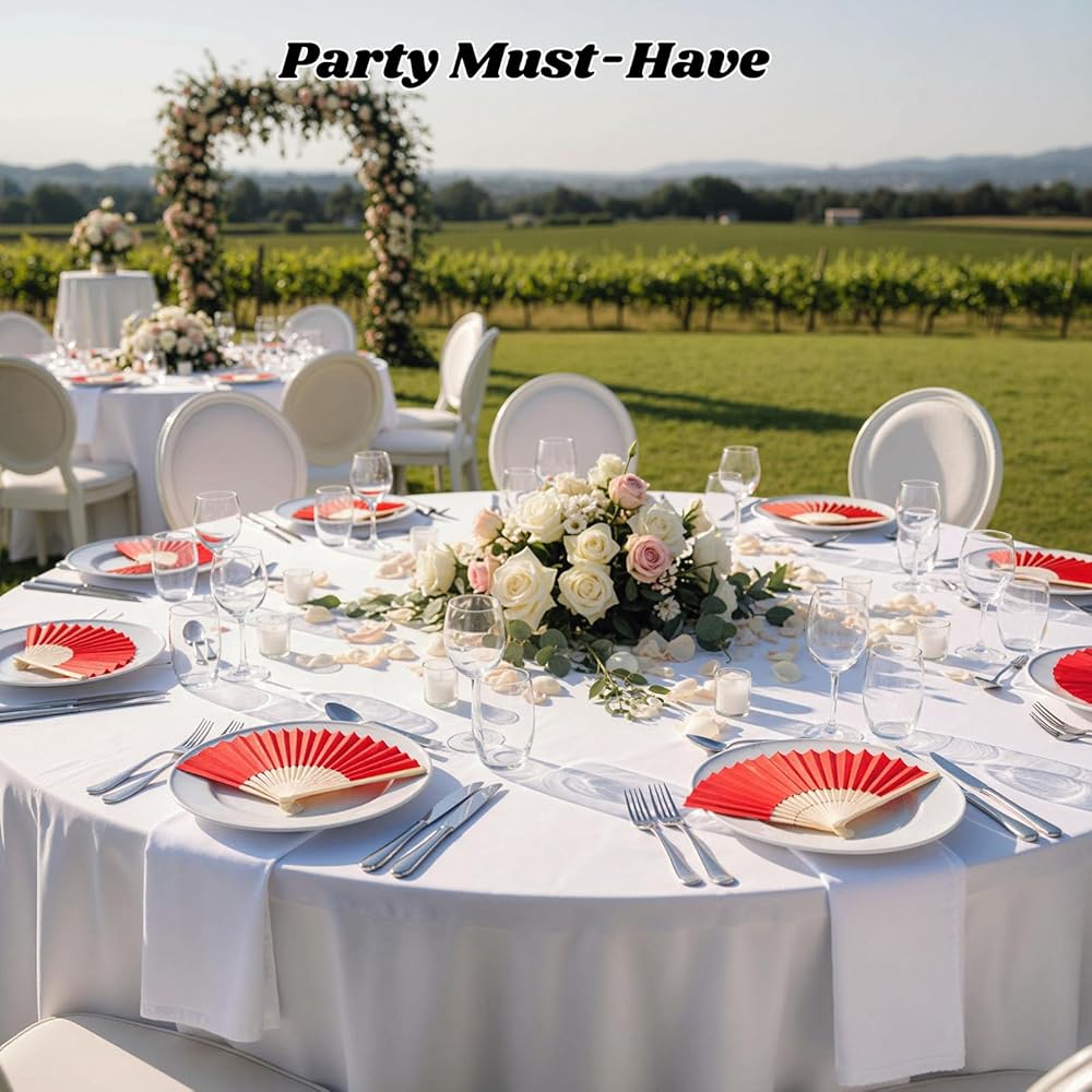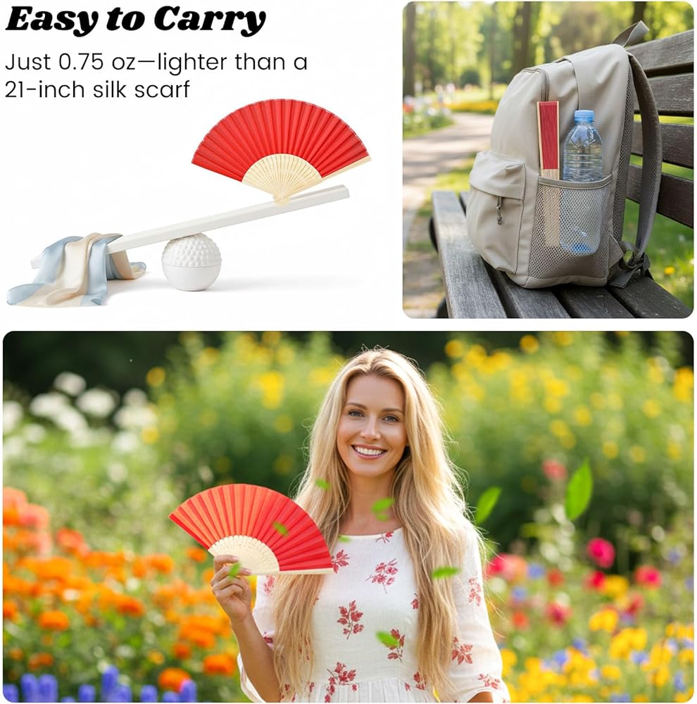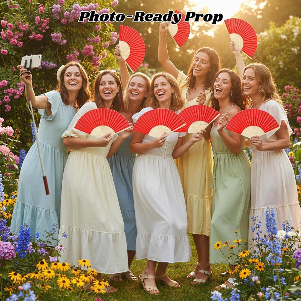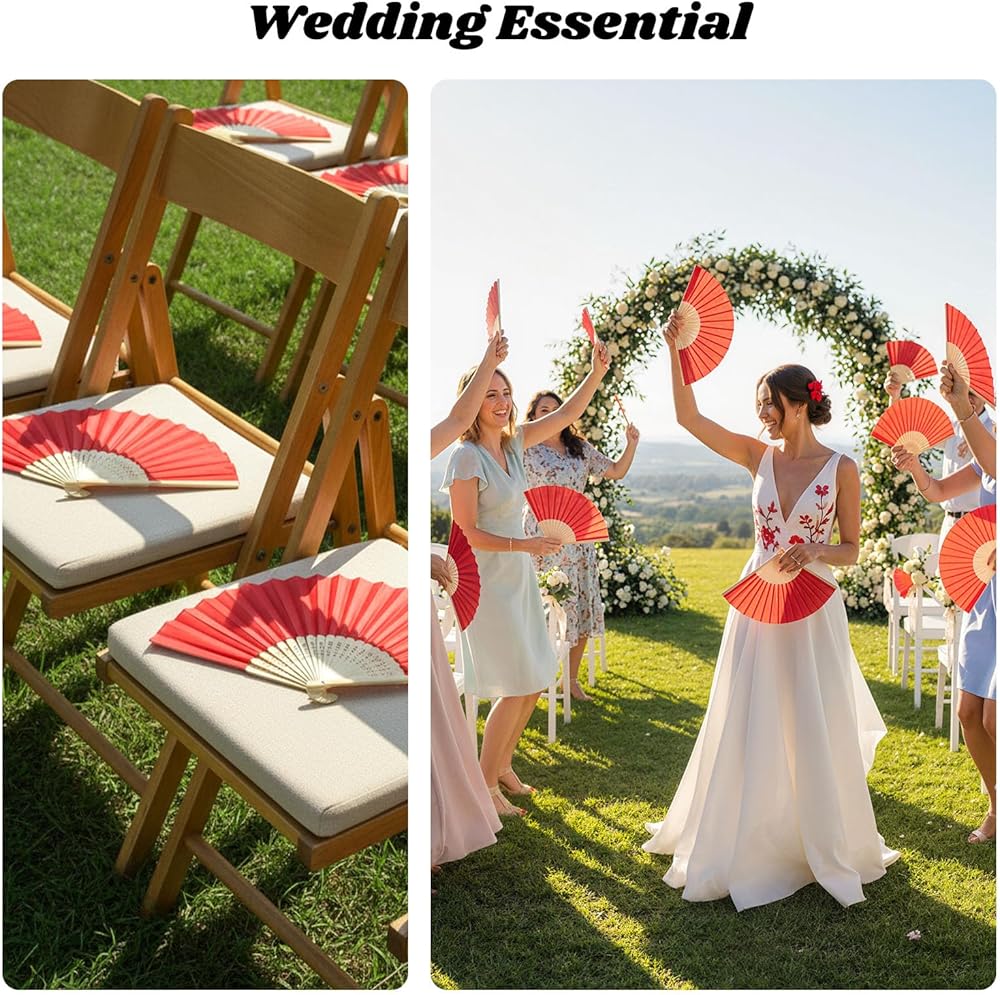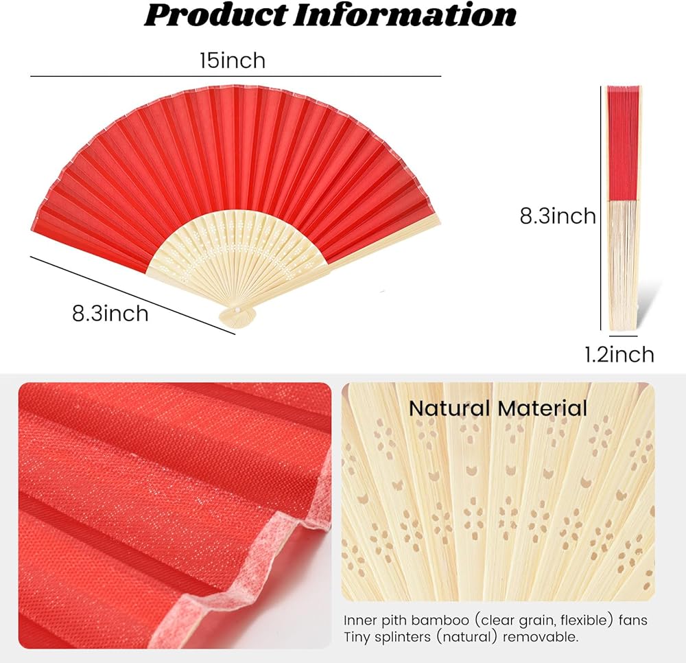 JOHOUSE 28 قطعة من مراوح اليد القماشية القابلة للطي، 8.3 بوصة مراوح قابلة للطي من القماش الأحمر محمولة باليد للحرف السائبة لحفلات الزفاف والرقص والسنة الصينية الجديدة لتزيين حفلات هيباتشي هدية جاهزة