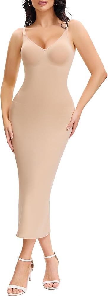 • ADJUSTABLE SHOULDER STRAPS & 3D BUST DESIGN: This shapewear for dresses provides natural coverage for the chest area no more pressure on your bra and shows your chest curve. Thanks to the 3D no-pressure bust design, you can comfortably wear your favorite bra underneath for extra support and add comfort. The adjustable shoulder straps ensure a personalized fit, while the flattering V-neckline adds a touch of glamour