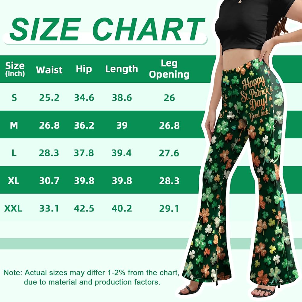 [Versatile Style for Every Occasion] - These flare pants women adore aren't just for St. Paddy's Day! Dress them up with a sequined top and boots for a festive costume, or pair with a casual sweater for coffee runs. The opaque, full-length design works as office casual wear, cozy loungewear, or even workout gear—because why choose between style and functionality?