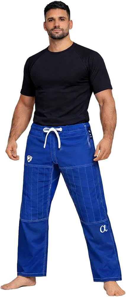 The Zed Honra Alpha Gi Pants for men are designed for Brazilian Jiu-Jitsu athletes who demand durability, performance, and competition-readiness. These IBJJF-legal pants are made from high-quality cotton-polyester ripstop fabric, offering lightweight feel and tear resistance. Reinforced stitching and knee panels help these pants hold up under pressure. The drawstring waist and multiple belt loops ensure a secure fit. Whether you're training hard or competing, these gi pants deliver comfort, strength, and a clean professional look. Ideal for use with most standard gi tops. Wash cold, tumble dry low or hang dry to preserve fit and material integrity.