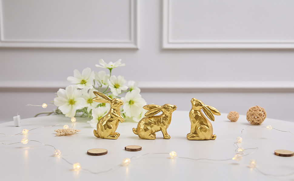 لهجة منزلية متعددة الاستخدامات للربيع وعلى مدار العام: مصممة لديكور عيد الفصح والربيع، هذه التماثيل الذهبية على شكل أرنب تكمل أيضًا ديكور المنزل على مدار العام، مما يضيف الدفء والرقي إلى غرف المعيشة ومساحات الطعام والمكاتب والمداخل.
