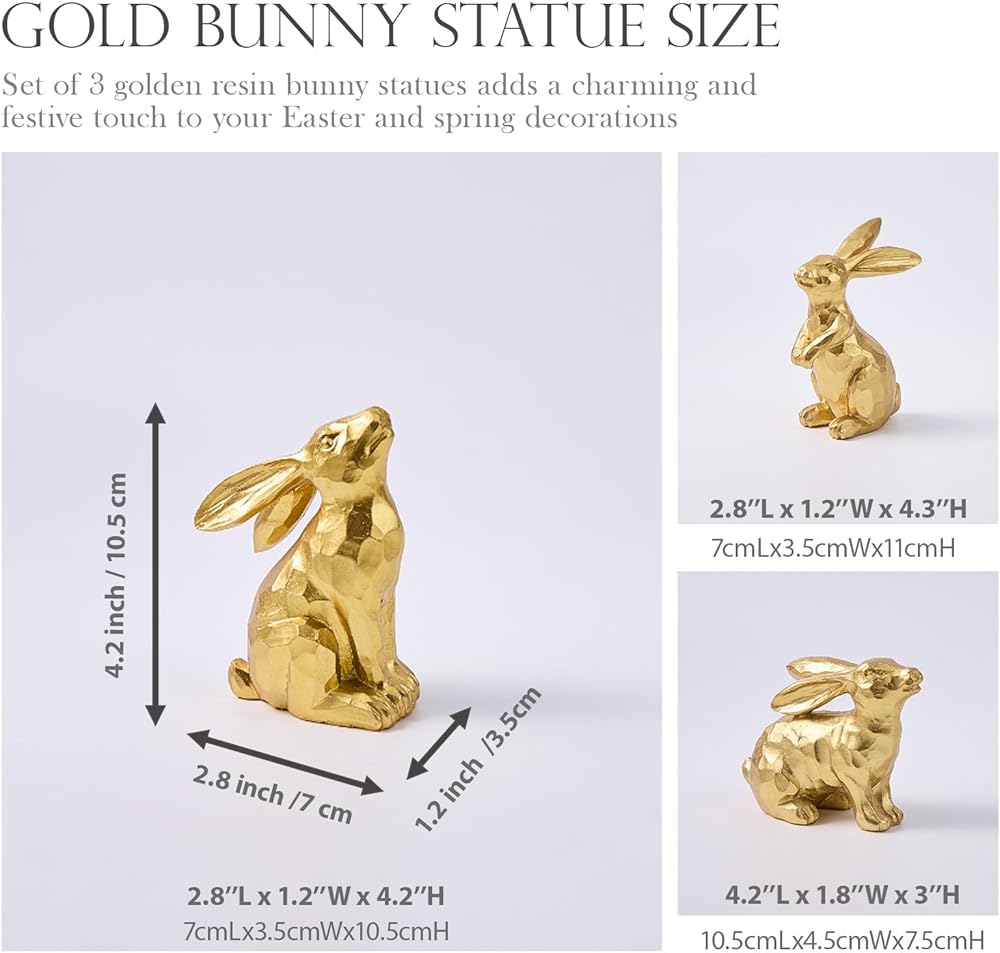 مجموعة ديكور أرنب عيد الفصح الأنيقة: تضيف هذه المجموعة المكونة من 3 تماثيل أرنب من الراتنج الذهبي لمسة ساحرة واحتفالية لديكورات عيد الفصح والربيع، مثالية للاحتفال بالموسم بالدفء والأناقة.