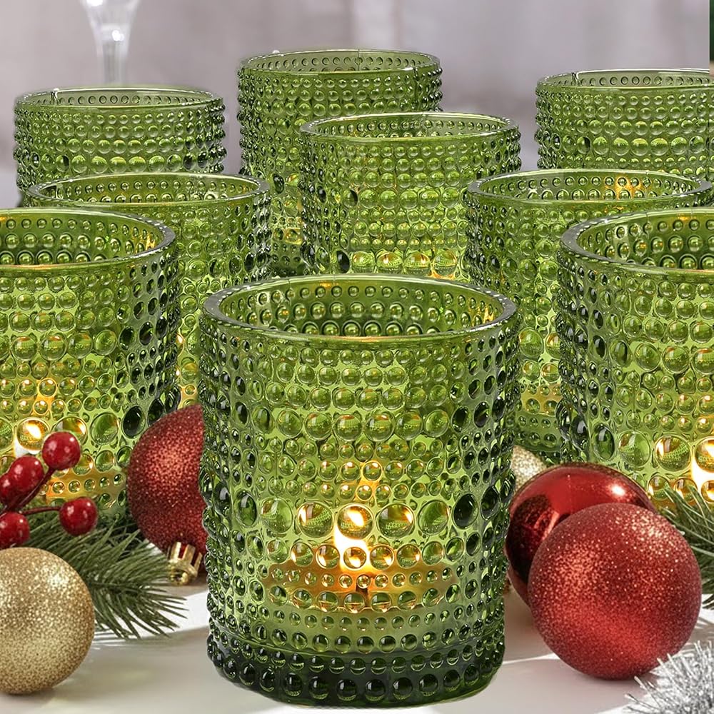 • تصميم منقط كلاسيكي أنيق: توفر مجموعة حامل الشموع النذرية الكهرمانية المكونة من 24 قطعة كمية وافرة للأماكن الكبيرة مع ترك إضافات للاستخدام المنزلي. يخلق نمط النقاط الكهرمانية الخالدة تلاعبًا ضوئيًا ساحرًا عند الإضاءة، ويلقي ظلالاً رقيقة تعزز أي أجواء.