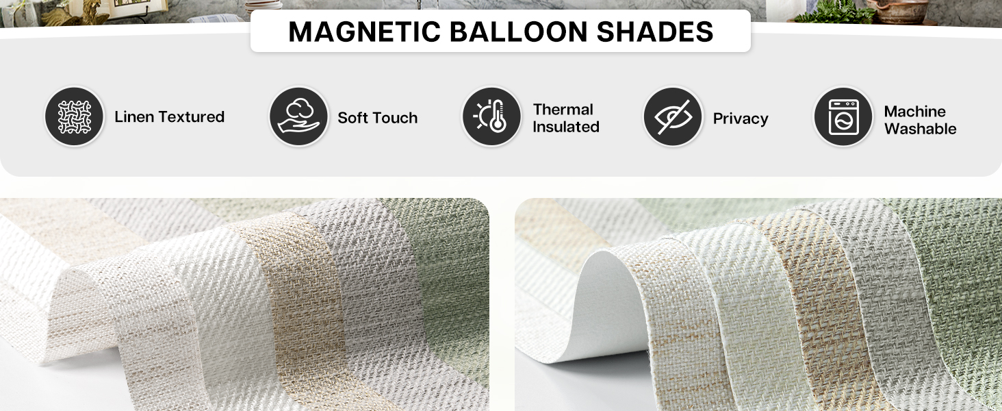 ربط مغناطيسي مبتكر: على عكس الإصدارات العادية التي تتطلب ربطًا يدويًا، تستخدم ستارة البالونات الخاصة بنا مغناطيسًا للتثبيت، بشكل أسهل وأسرع. لا يمكن تعديل الارتفاع بحرية، ولن يؤدي الارتفاع الثابت إلى عدم تناسق في الأسفل. يمكن لفها مثل الظل الروماني، كما يمكن تعليقها كستارة قصيرة، ولا تزال ستارة عادية بجيب القضيب. قم بربط الظلال للسماح بدخول المزيد من الضوء الطبيعي أو قم بفكها لمزيد من التغطية والخصوصية.