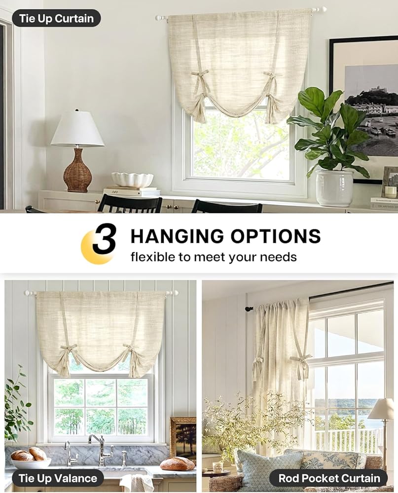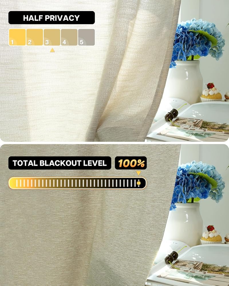 جيدة التهوية والخصوصية: ستائر من القماش الممزوج بالكتان المنسوج المفتوح الفاخر، تضيف سحرًا منعشًا إلى نافذتك. يسمح بتدفق الضوء الطبيعي إلى غرفتك مع توفير الخصوصية، مثالي للمطبخ أو غرفة المعيشة أو غرفة الطعام أو أي نافذة صغيرة.