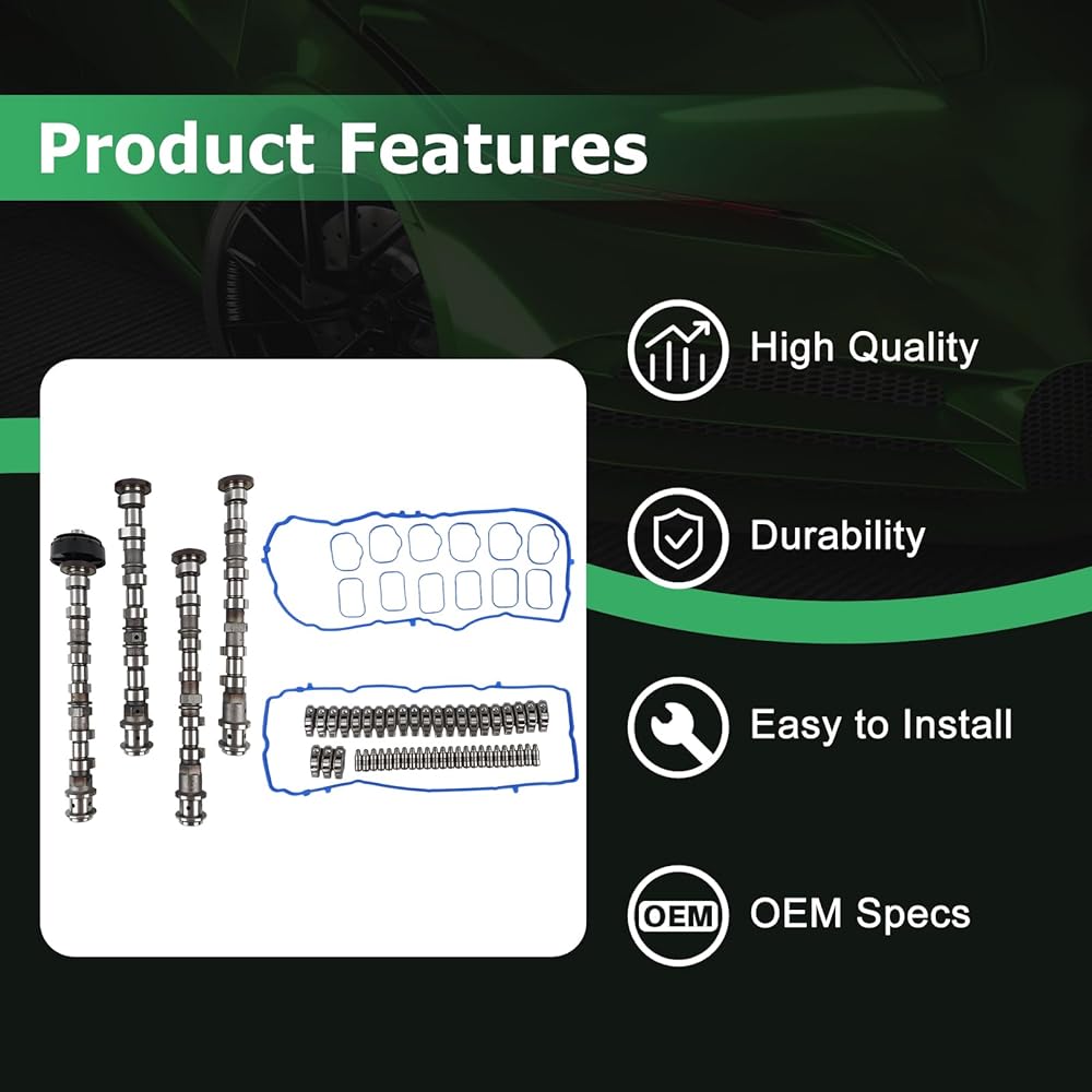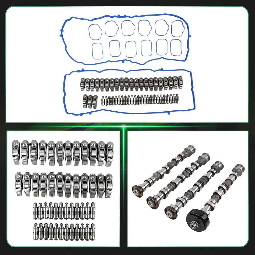 【Complete Kit】Includes Left & Right Intake and Exhaust Camshafts, Rocker Arms, Lash Adjusters, Cylinder Head Cover Gaskets, Intake Plenum Gasket, and Intake Manifold Gasket. Provides everything needed for a full top-end engine rebuild or performance refresh.