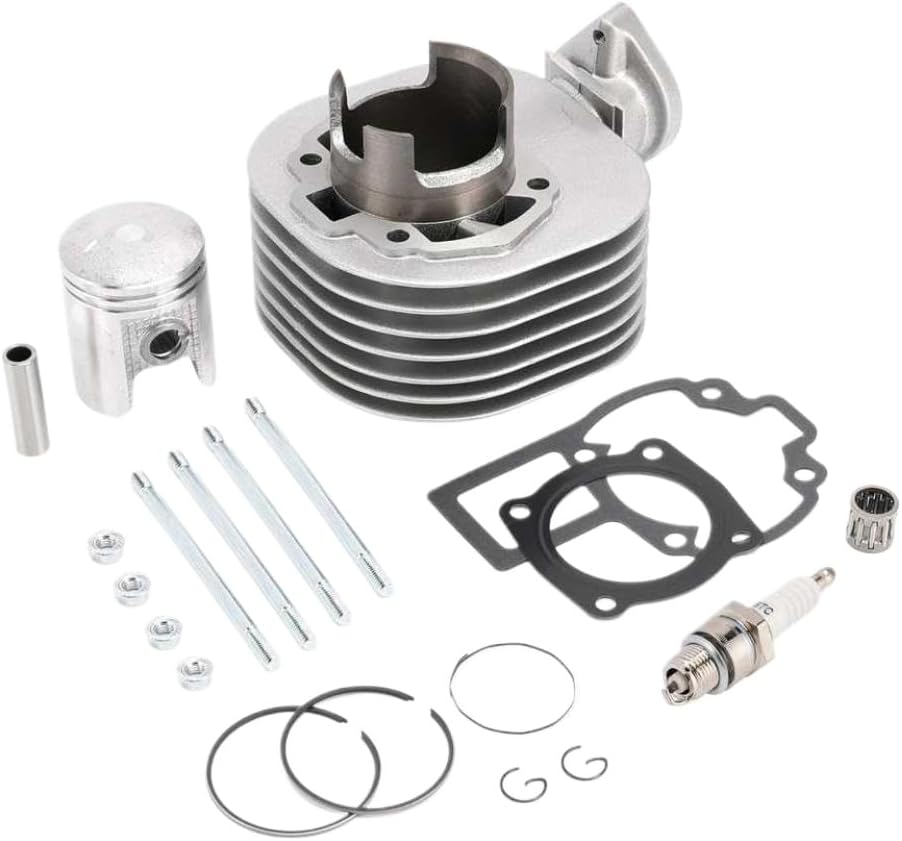 CYLINDER PISTON KIT RINGS GASKETS END SET FOR LT 80 LT80 1987-2006 This end rebuild kit is designed for use in models from 1987 to 2006 with a standard bore size of 50 mm and a stroke of 42 mm.It is suitable for applications where cylinder blow-by, low compression, or piston seizure has occurred, providing a complete solution for restoring engine performance. The kit includes an aluminum cylinder with an internal cast iron liner for efficient heat dissipation and durability.The piston features an anodized coating to enhance heat resistance and service life.A full set of piston rings, a 12mm steel wrist pin, and two circlips are included to ensure proper assembly and function.The gasket set contains all necessary seals for the cylinder base and head, along with performance-grade materials for improved sealing and longevity. Additional components include four cylinder studs with nuts, a piston pin bearing, and a spark plug.All parts are provided as shown in the product image, ensuring completeness for a full end rebuild. Displacement: 80cc Bore diameter: 50mm Piston pin diameter: 12mm Piston pin length: 40mm Material: Aluminum, Steel This kit serves as a direct replacement for components.Users are advised to verify compatibility by comparing part numbers and physical dimensions with their existing hardware before installation. Compatibility Disclaimer: This is an aftermarket replacement part.Any brand names or model designations mentioned are used solely for the purpose of demonstrating compatibility.