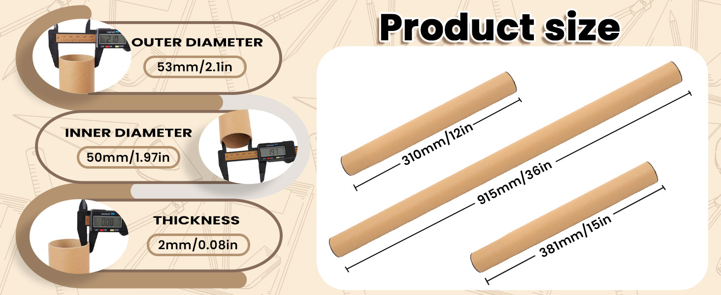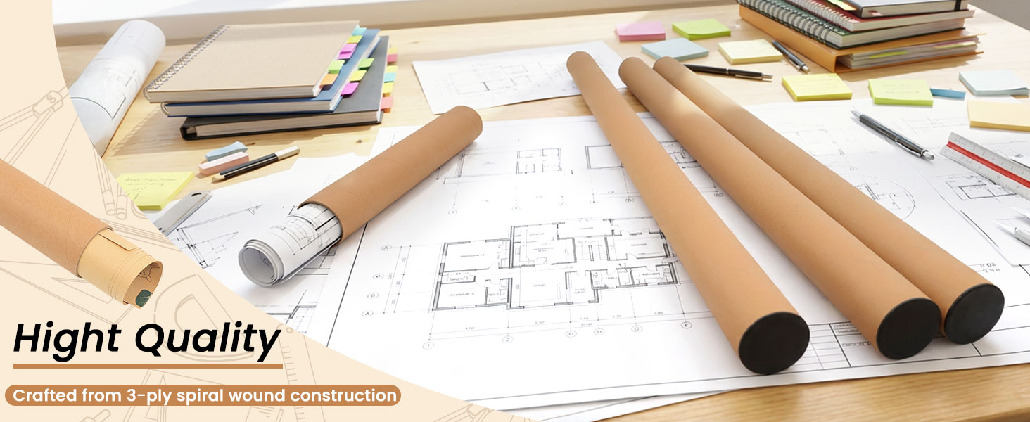 الشحن الآمن: استخدمها كأنابيب بريدية للملصقات أو الصور أو البطاقات البريدية أو الرسومات الهندسية، ثم قم بتمريرها في لفتك، ثم قم بتسمية الجزء الخارجي، وشحنها بثقة