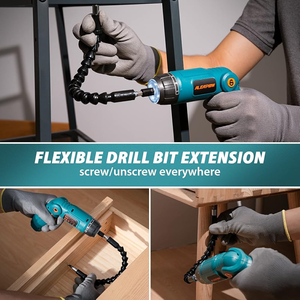 مقبض ثلاثي الأوضاع وعمود مرن - يمكن تعديل مقبض مفك البراغي إلى 3 زوايا مختلفة بناءً على احتياجاتك. مع العمود المرن المتضمن في مجموعة الأدوات، يمكنك بسهولة التعامل مع أي مشروع حتى في الزوايا الضيقة التي يصعب الوصول إليها