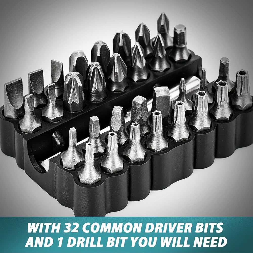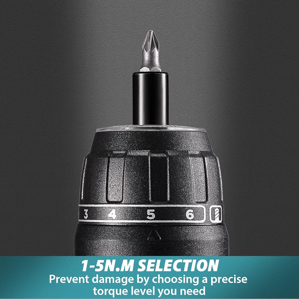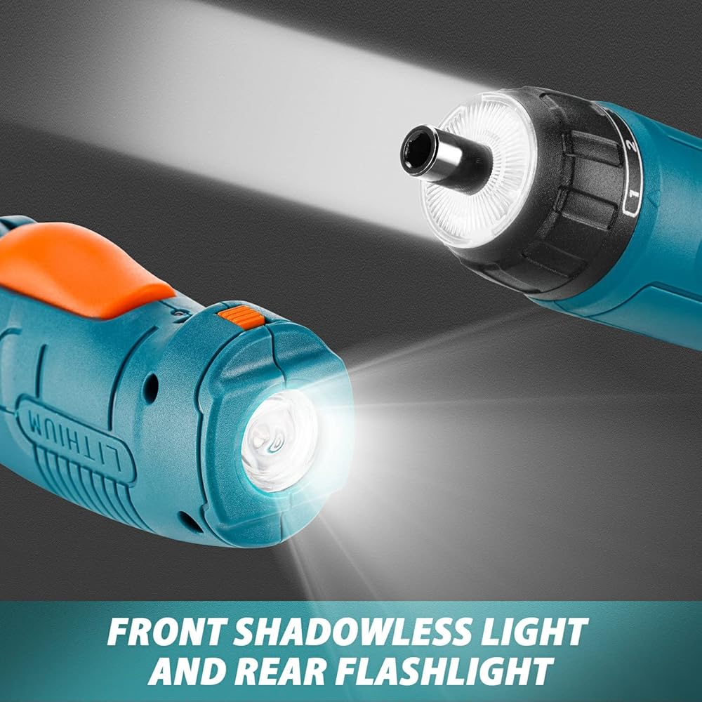 عزم دوران قابل للتعديل 6+1 و4 نانومتر - مع إعداد عزم دوران 6+1 وعزم دوران أقصى 4 نانومتر وسرعة 200 دورة في الدقيقة، يوفر مفك البراغي الكهربائي الطاقة الأكثر دقة للمواد المختلفة ويحمي سطح العمل جيدًا من التلف. مع لقمة مثقاب سداسية و32 قطعة من رؤوس مفك البراغي بأحجام مختلفة متضمنة في المجموعة، يمكن استخدام مفك البراغي اللاسلكي في معظم مشاريع الإصلاح والصيانة المنزلية