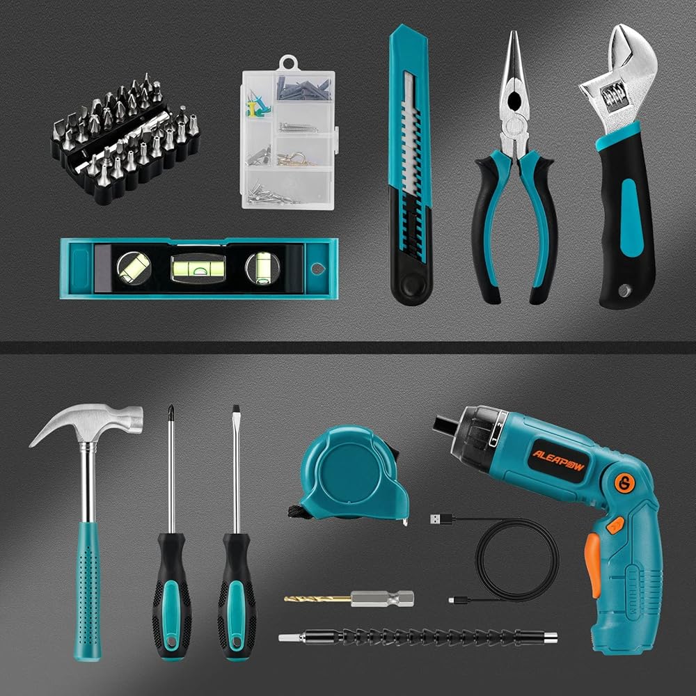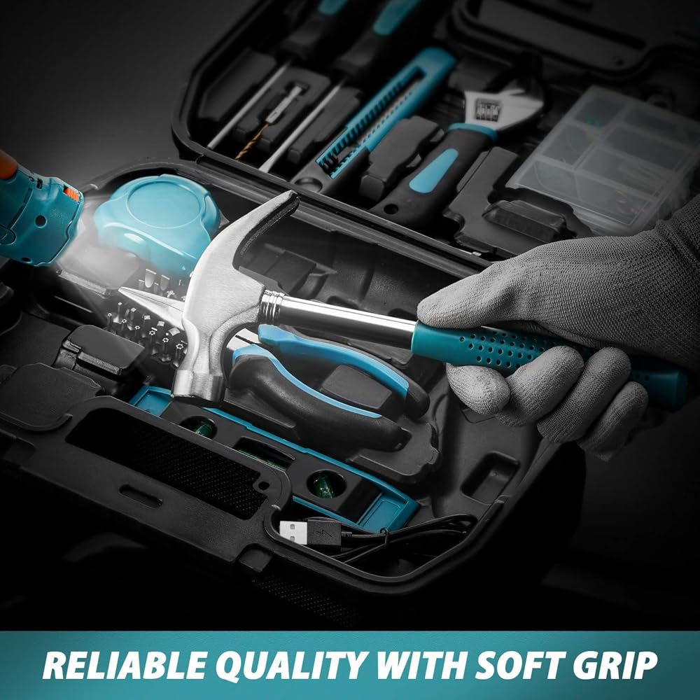 مجموعة أدوات يدوية الصنع مكونة من 124 قطعة - عمود مرن واحد، مطرقة مخلب بمقبض مطاطي، مفتاح ربط قابل للتعديل 6 انش، 1 مفك براغي فيليبس، 1 مفك براغي مشقوق، 1 قطعة كماشة طويلة الأنف 6 انش، 1 قطعة مستوى اوربيدو، 1 قطعة سكين متعدد الاستخدامات، 1 قاعدة شريط قياس 3 متر، 1 قطعة ساق سداسية 2.5 ملم HSS مثقاب مثقب, 32 قطعة من رؤوس مفك البراغي، قطعة واحدة من قضيب تمديد 60 ملم، 10 قطع من البراغي، 10 قطع من أنابيب التمديد، 5 قطع براغي خطاف، 5 قطع دبابيس ضغط، 50 قطعة مسمار