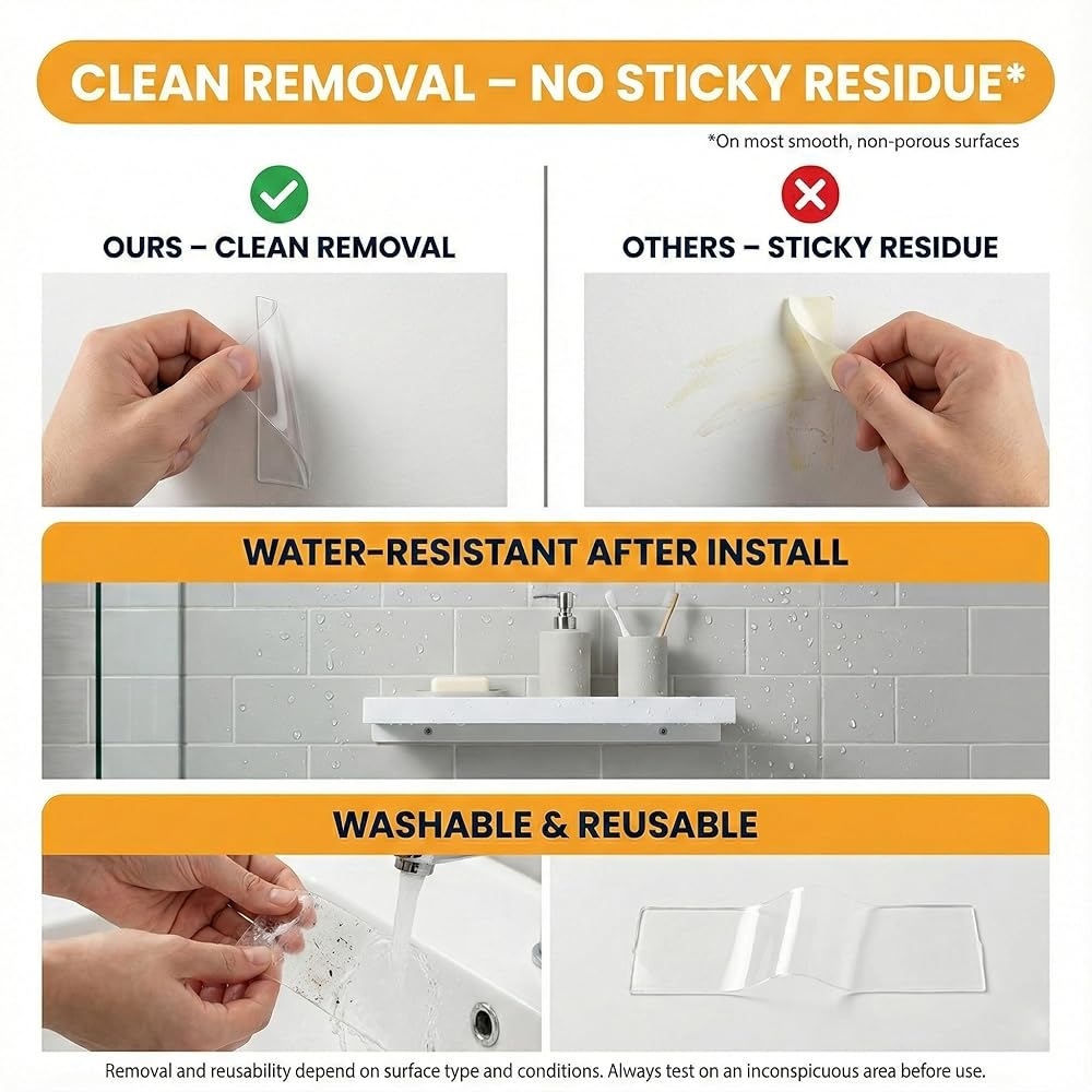 [صديق للمستأجر: إزالة خالية من الأضرار] معتمد من قبل المستأجرين باعتباره الحل النهائي للتركيب الذي لا يتطلب أي حفر. إنه يخلق ختمًا يشبه المكنسة الكهربائية على الزجاج والبلاط والمعادن والرخام والذي يمكن إزالته بشكل نظيف دون أي بقايا. ملحوظة: لا يُنصح باستخدامه على الحوائط الجافة المطلية، لأن الالتصاق القوي الصناعي قد يؤدي إلى تقشير الطلاء السائب عند إزالته.