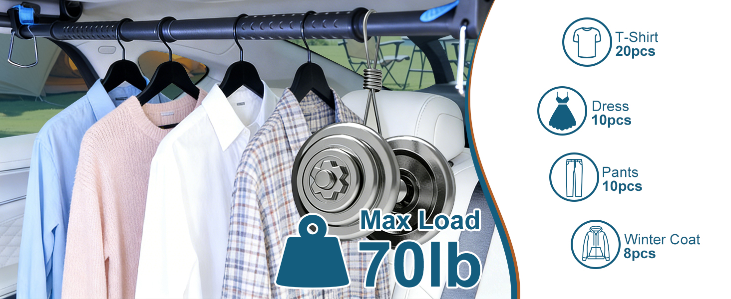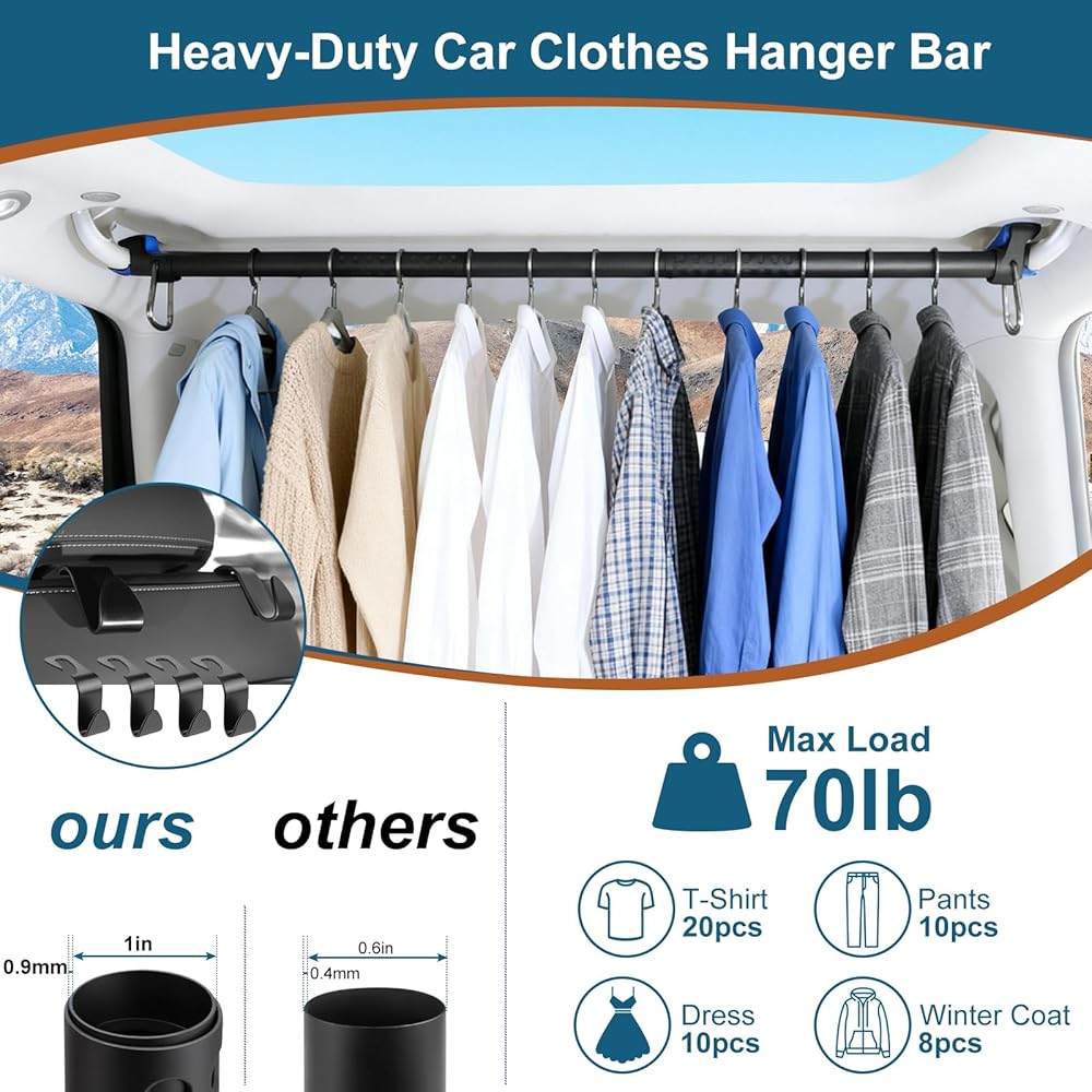 • 【قضيب فولاذي عالي الجودة】يتميز بأنبوب قطره 2.54 سم وسمك جدار 0.9 مم، قضيب تعليق السيارة هذا مصنوع من سبائك الفولاذ الصلب لمتانة ممتازة ضد الكسر والصدأ. يتحمل ما يصل إلى 70 رطلاً، ويحمل 40-60 قطعة ملابس بشكل آمن، ويناسب طلاب الجامعات والعطلات العائلية ورحلات العمل بشكل مثالي.
