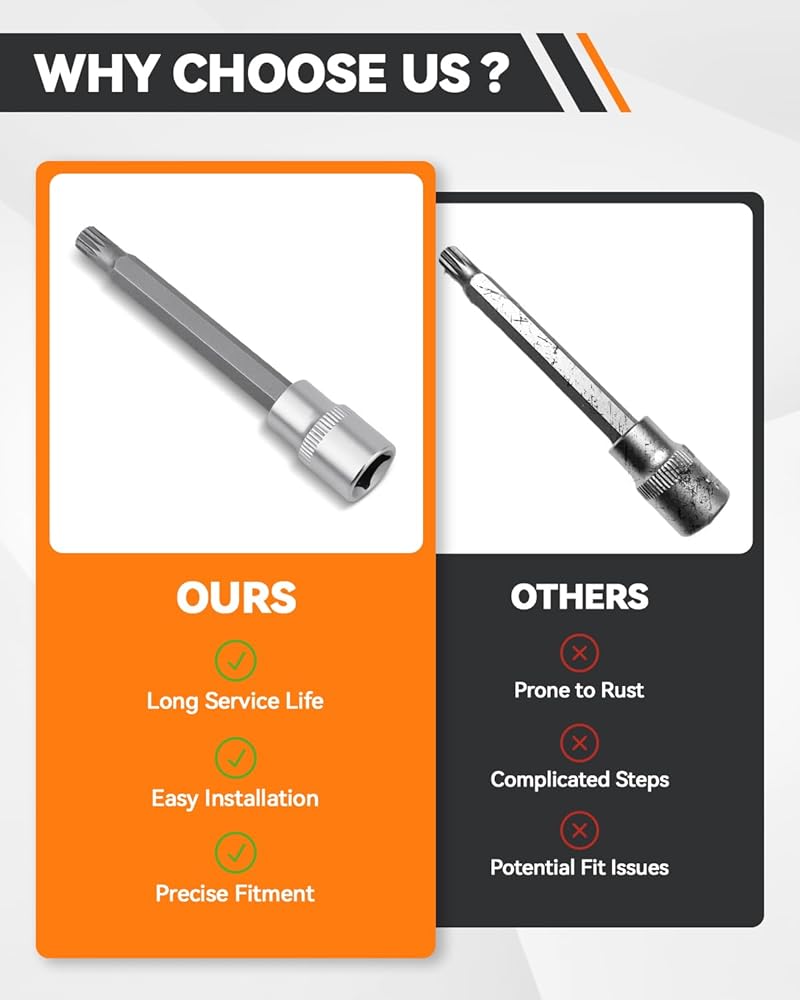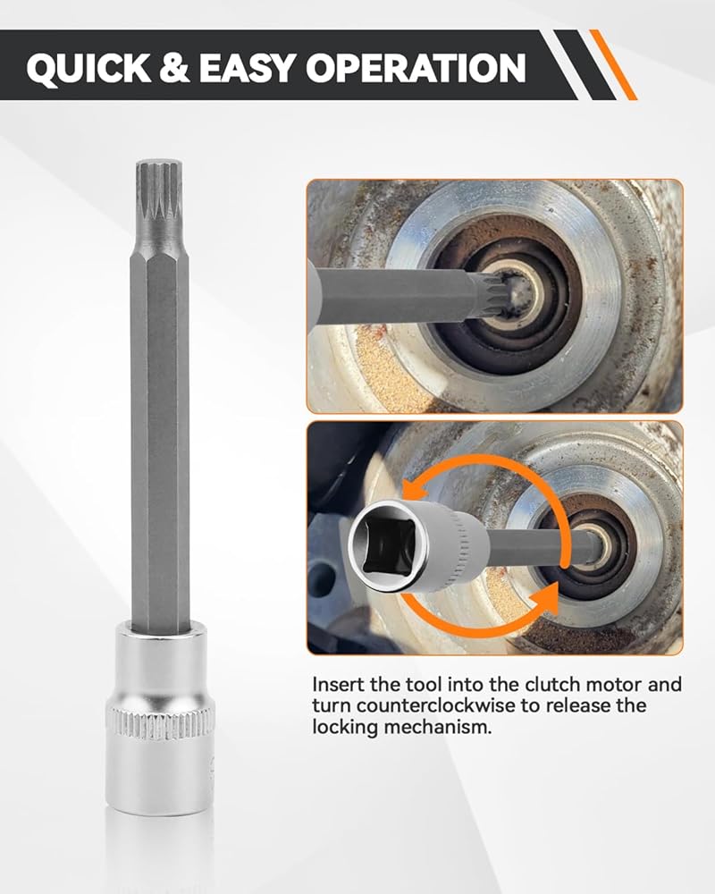 • Core Tool Specifications: This clutch motor electromechanical unit unlock tool measures 7mm with 14 teeth and a standard 3/8" drive. This precise design ensures a secure fit and effective torque transfer when engaging with the target component