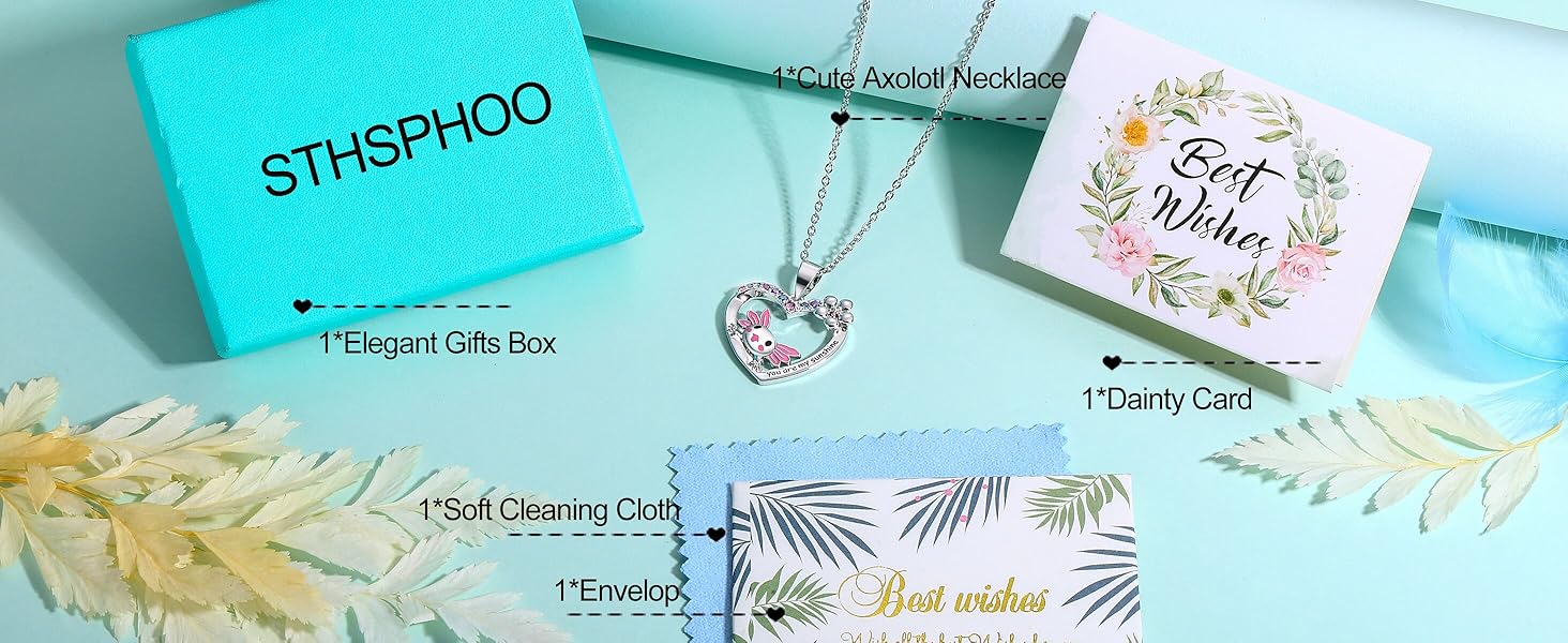 ❤العبوة❤ 1 × قلادة أكسولوتل، 1 × صندوق هدايا، 1 × بطاقة أنيقة، 1 × قطعة قماش تلميع فضية، 1 × بطاقة ملاحظات فارغة مرفقة، 1 × ظرف. تأتي قلادة أكسولوتل اللطيفة مع كل ما تحتاجه لتقديم الهدية المثالية! لا حاجة لتغليف الهدايا مرة أخرى. يمكنك كتابة بعض التمنيات الخاصة لها.