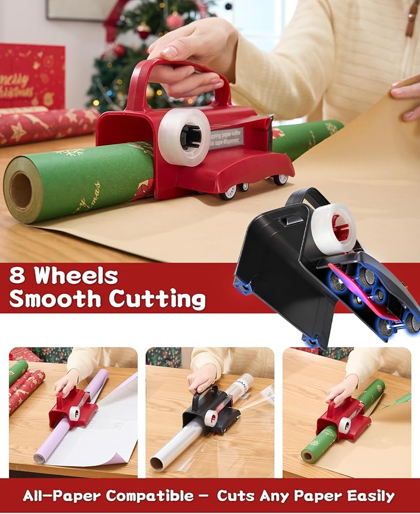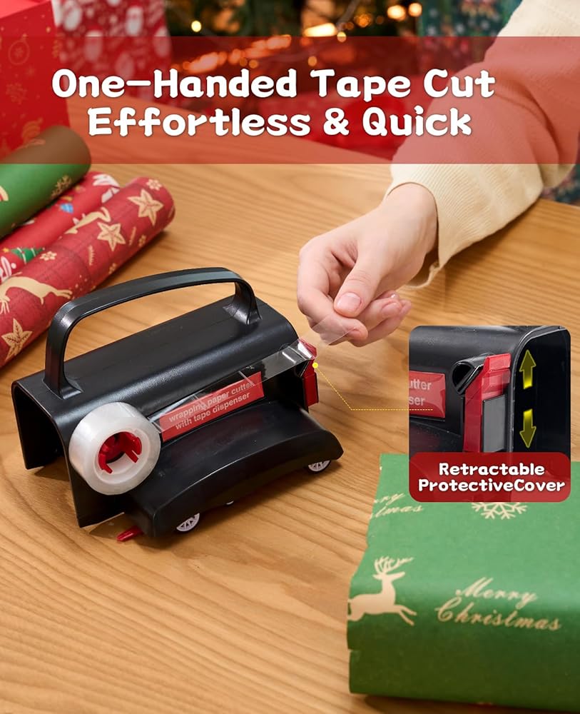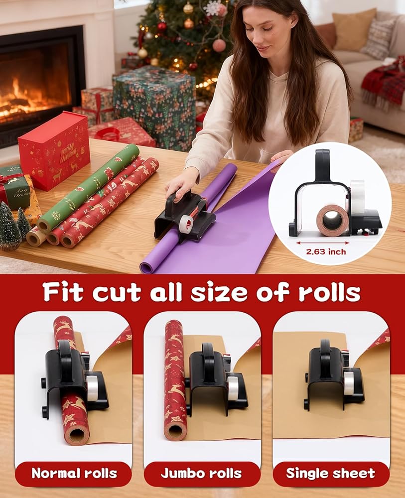 【تجربة قطع فعالة وسلسة】مصممة بمقبض مريح، تضمن قطاعة تغليف الهدايا هذه قطعًا مستقيمة ونظيفة من خلال مواد مختلفة بما في ذلك ورق الكرافت والسيلوفان والفينيل دون تمزيق. تسمح أداة قطع الشريط المدمجة بتمزيق الشريط بشكل فوري، مما يسرع عملية تغليف الهدايا الخاصة بك في أعياد الميلاد والعطلات على حد سواء.