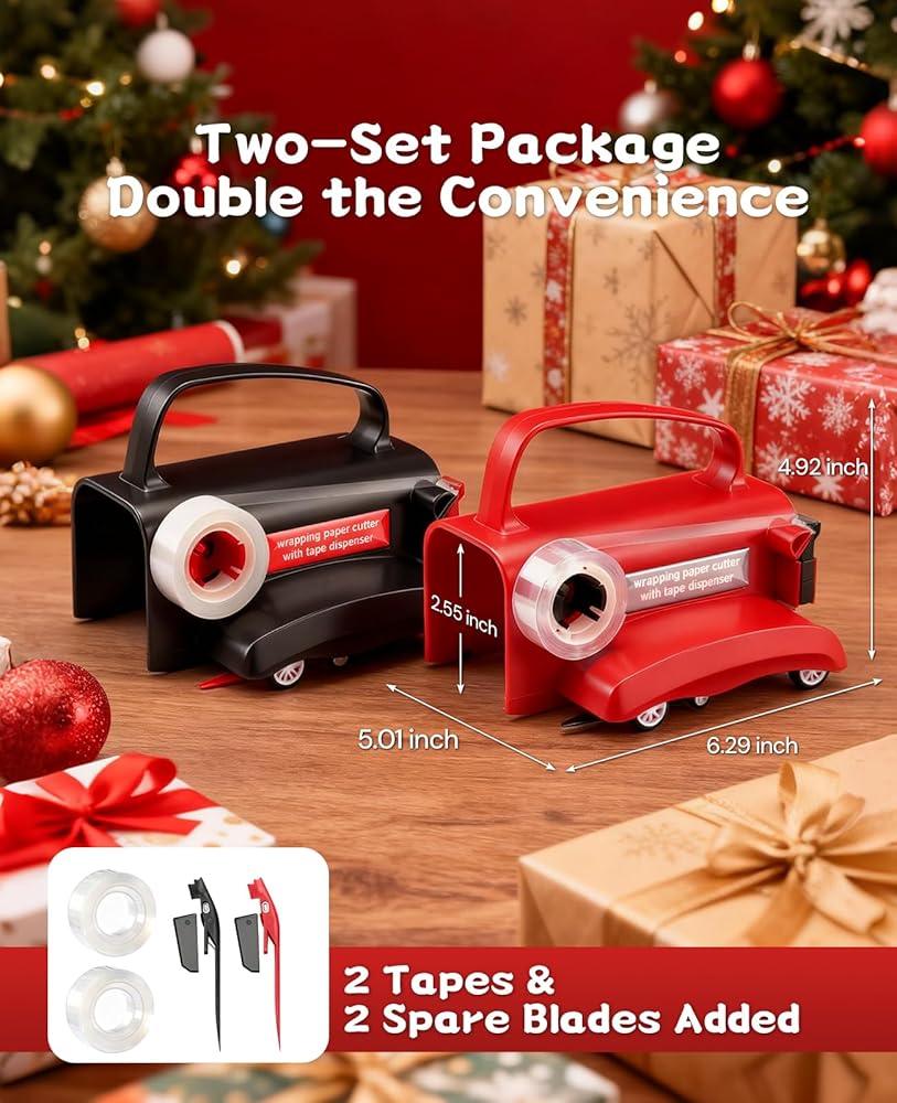 【قطاعة ورق التغليف وموزع الأشرطة ذات الاستخدام المزدوج】 يتيح لك شريط التمرير وموزع الشريط الخاص بنا قطع لفات ورق التغليف دون عناء أثناء توزيع الشريط الشفاف في وقت واحد. تأتي هذه الأداة المفيدة مع قاطعتين و4 أشرطة شفافة وشفرتين قابلتين للاستبدال مع غطاء. يمكن لقواطع الورق المزودة بموزع الأشرطة أن تلبي احتياجاتك بالكامل لتعبئة صناديق الهدايا خلال موسم أعياد الميلاد وعيد الميلاد، وهذه المجموعة كافية لدعم أعمال التعبئة لما يقرب من 1000 صندوق هدايا خلال موسم العطلات والاستخدام النهاري.