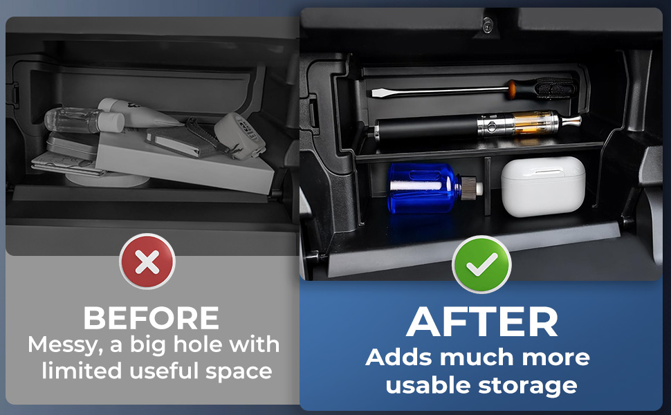 مادة جيدة الصنع - مصنوعة من مادة أكريلونتريل بوتادين ستايرين الصلبة والمتينة. هيكل قوي ومتين، ليس من السهل أن يتشقق أو يتشوه، مما يوفر حل تخزين موثوق للاستخدام طويل الأمد. إنه يكمل الملحقات الداخلية لسيارة تويوتا تاكوما 2024-2026، ويجمع بين المظهر الأنيق والوظائف الموثوقة.