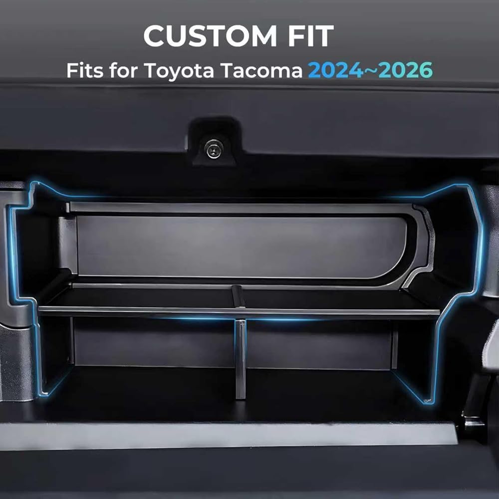 منظم فواصل صندوق القفازات متوافق مع Toyota Tacoma 2024 2025 2026 (الجيل الرابع تاكوما)، الملحقات الداخلية لحجرة صندوق القفازات وفواصل تخزين لـ 2024-2026 Tacoma، أسود