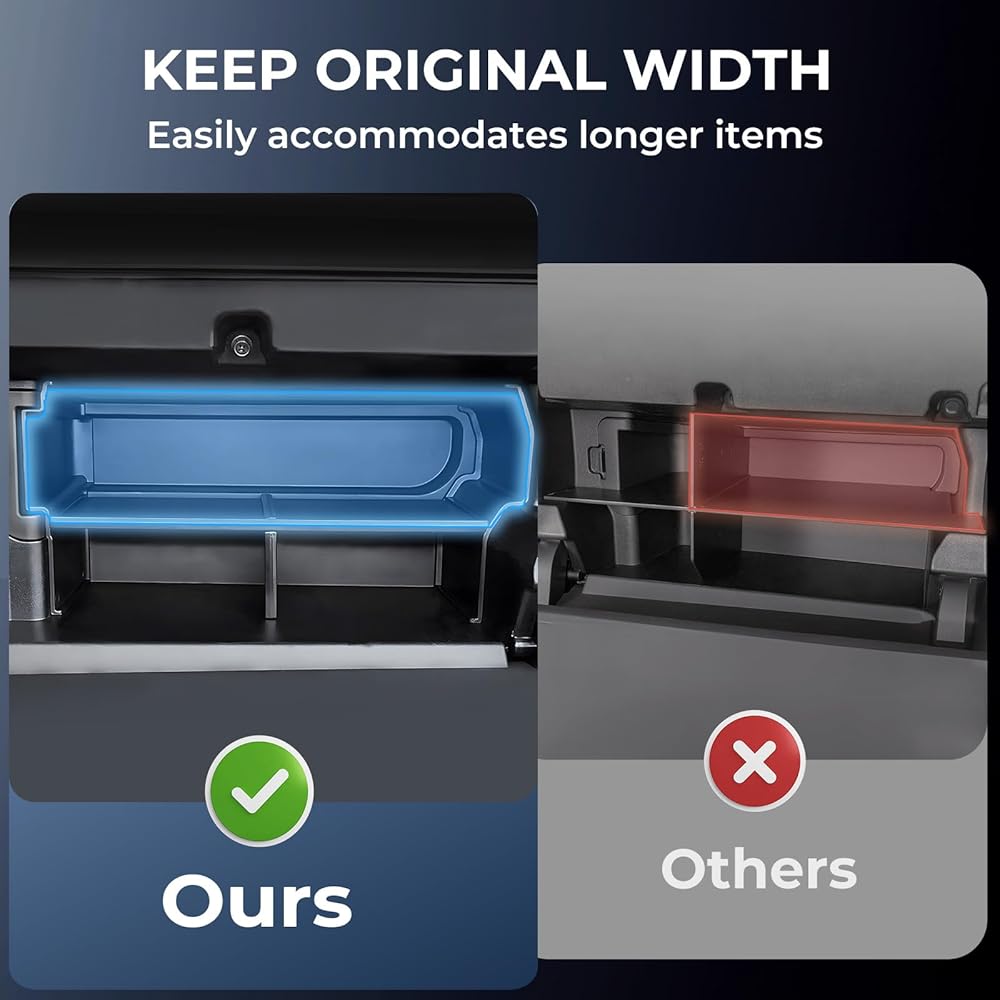 حل تخزين مثالي - صندوق قفازات الركاب الأصلي هو مجرد صندوق فارغ. يوفر منظم صندوق قفازات تاكوما 2024-2026 3 مساحات مميزة لتخزين العناصر الصغيرة مثل الأدلة والنظارات الشمسية والمحافظ والأقلام والبطاقات وأجهزة الاتصال اللاسلكي والمزيد. قل وداعًا للفوضى وحافظ على أغراضك منظمة.